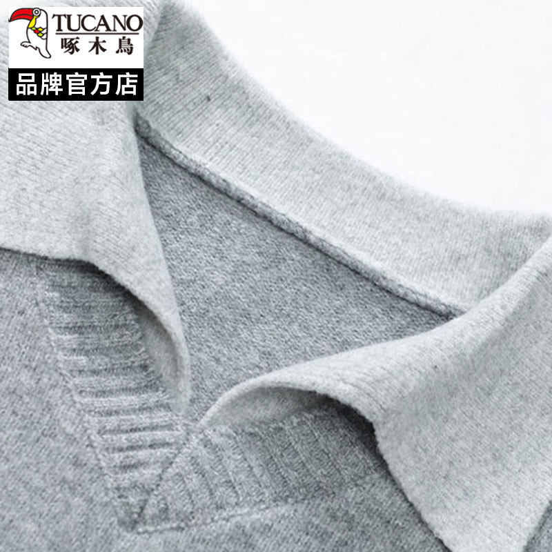 啄木鸟2026春季新款假两件翻领针织衫男慵懒风加厚内搭毛衣潮流