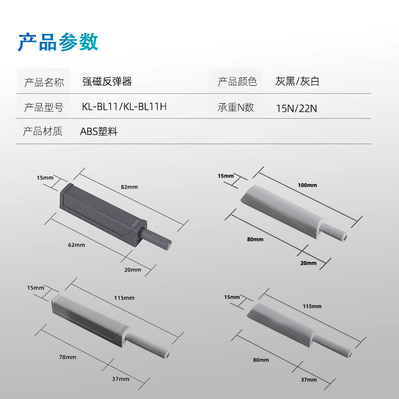 坚朗柜门反弹器免装拉手抽屉隐形门按压式开关弹开器弹簧KL-BL11