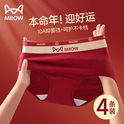 猫人本命年红色内裤女士纯棉抗菌全棉加长裆中腰无痕女生三角短裤
