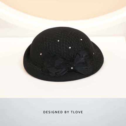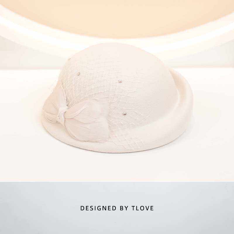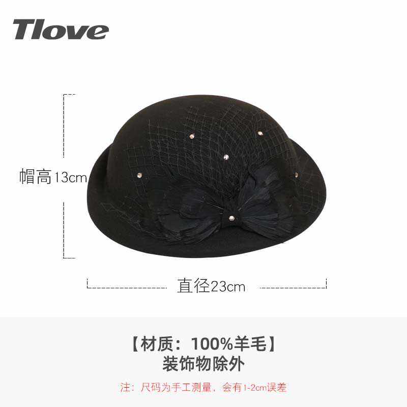 9635时尚百搭空姐帽洋气韩版减龄羊毛呢帽子女士英伦复古网纱礼帽