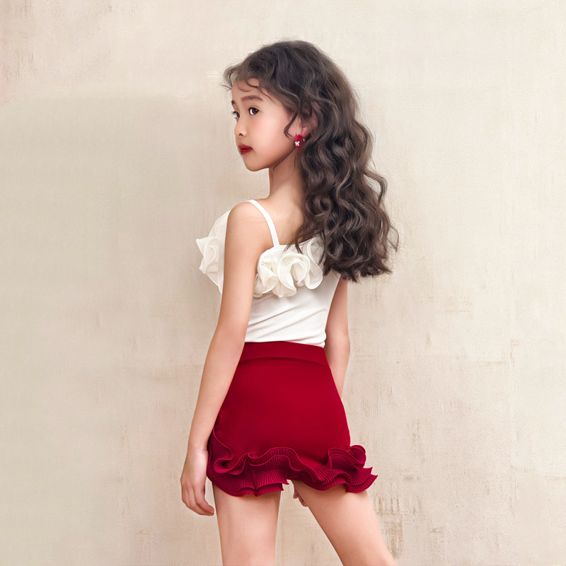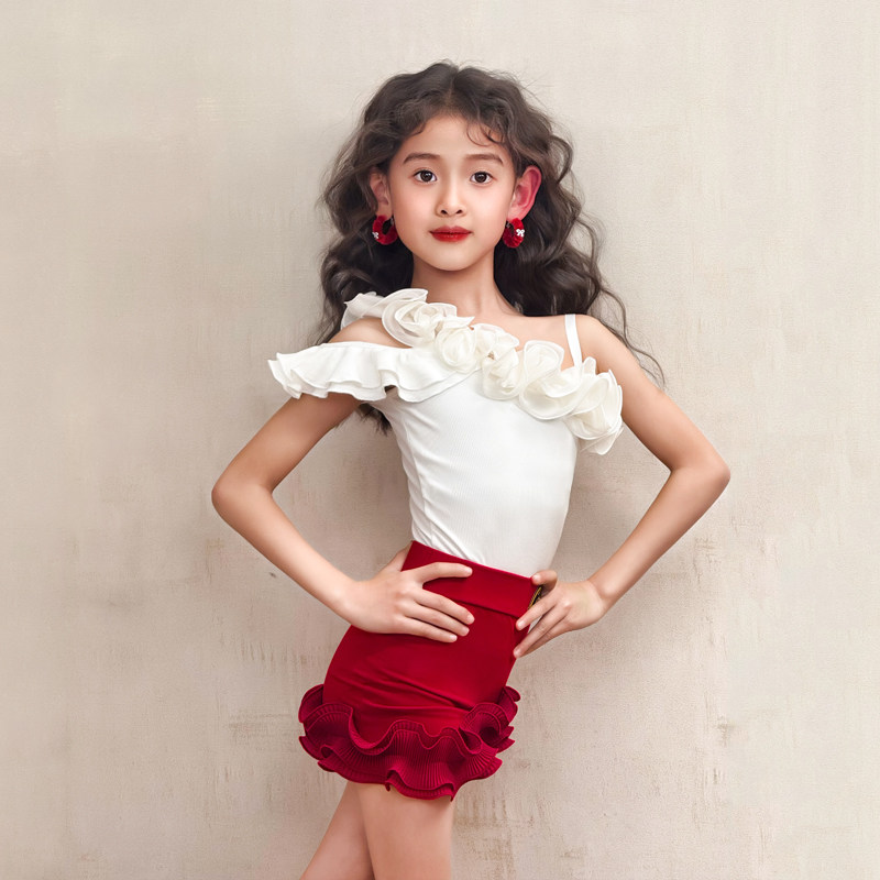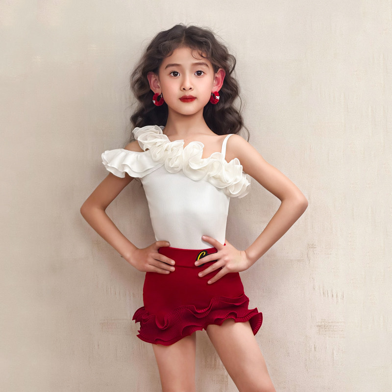 康尼拉丁舞新款练功服少儿网红上衣跳舞裙套装夏季舞蹈服女童服装