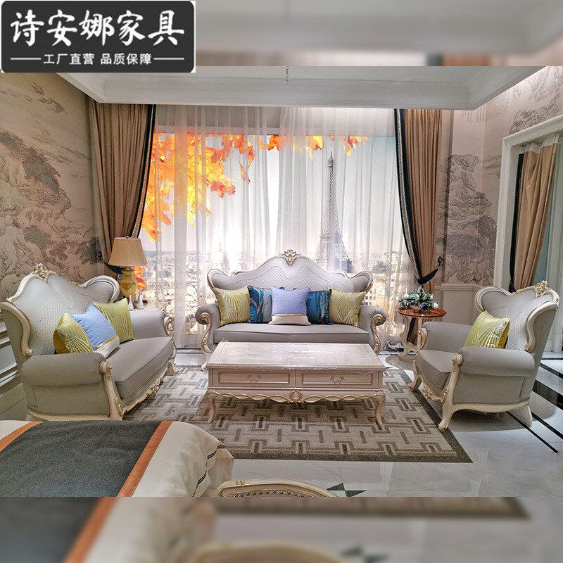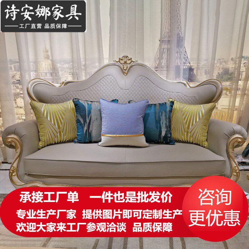 欧式沙发皮艺组合实木法式奢华简欧别墅新古典小户型全套客厅家具
