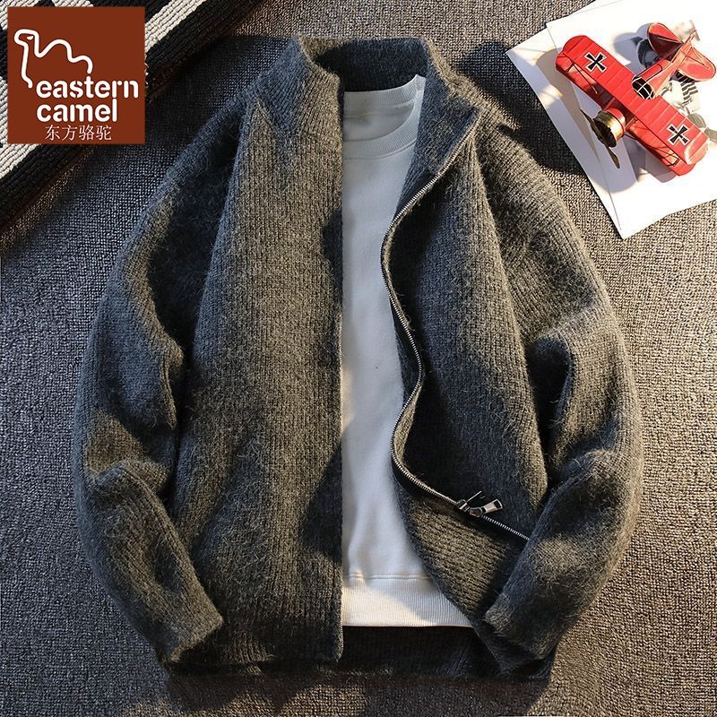 拉链开衫毛衣外套男春秋季宽松潮流夹克日系复古青少年纯色针织衫