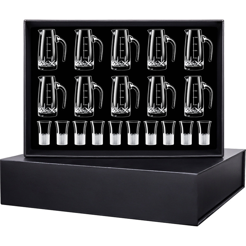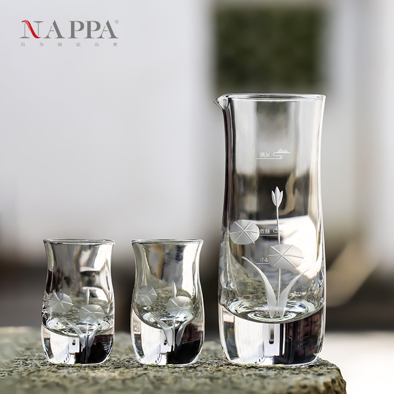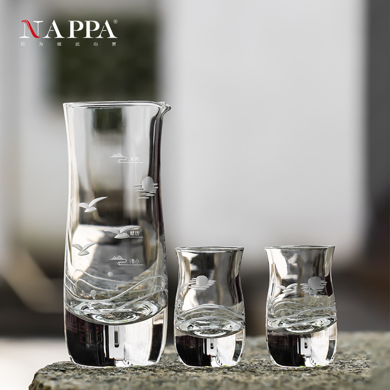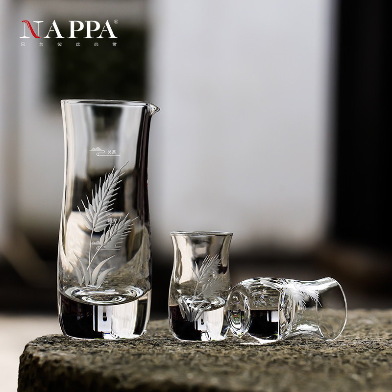 NAPPA国风手工雕花白酒杯分酒器水晶一口杯 家用中式白酒酒具套装