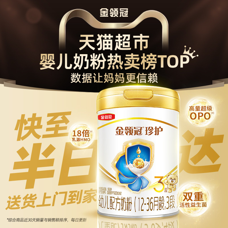 【六维更易吸收】伊利金领冠珍护3段900g×6罐1-3岁婴幼儿牛奶粉