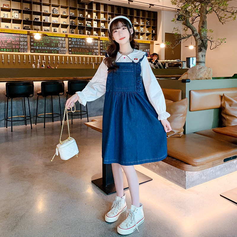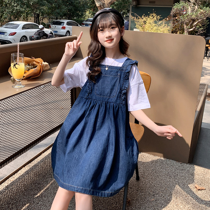 女童连衣裙套装夏装2022新款韩版大童儿童夏季韩版洋X气牛仔背带