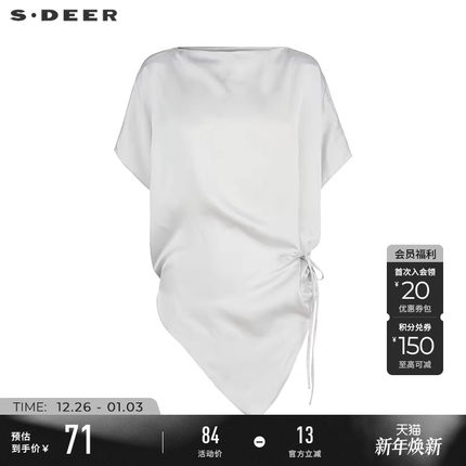 sdeer圣迪奥女装OL风一字领收腰不规则短袖衬衫S223Z0472