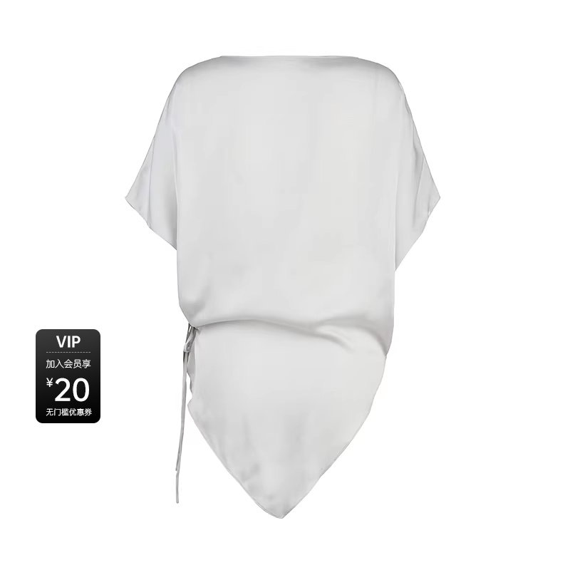 sdeer一字领收腰不规则短袖衬衫