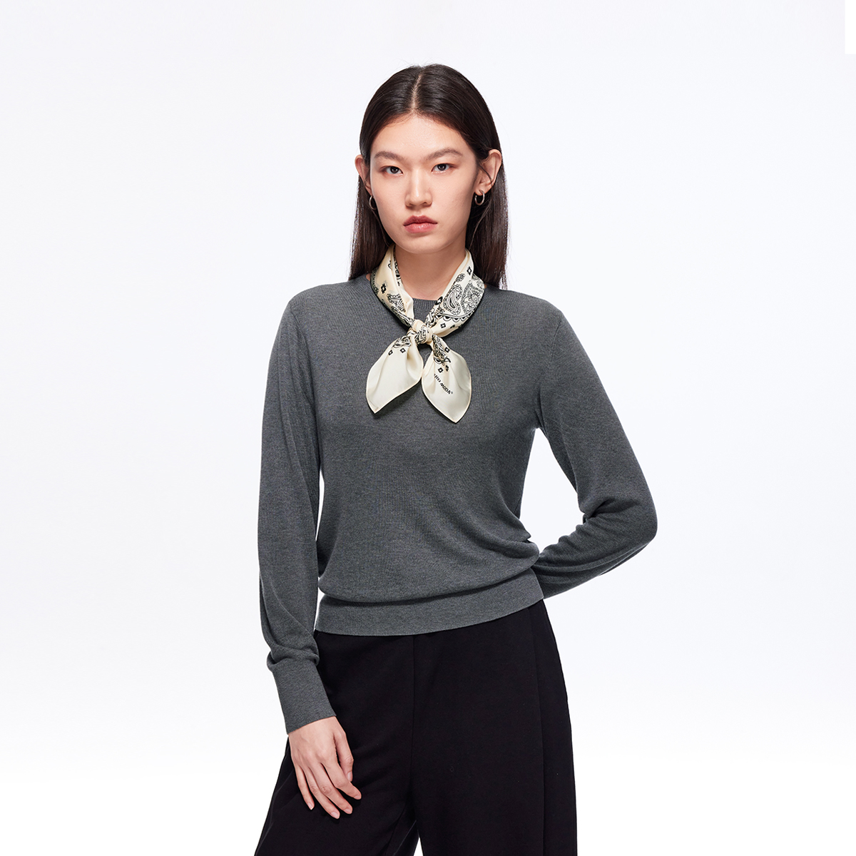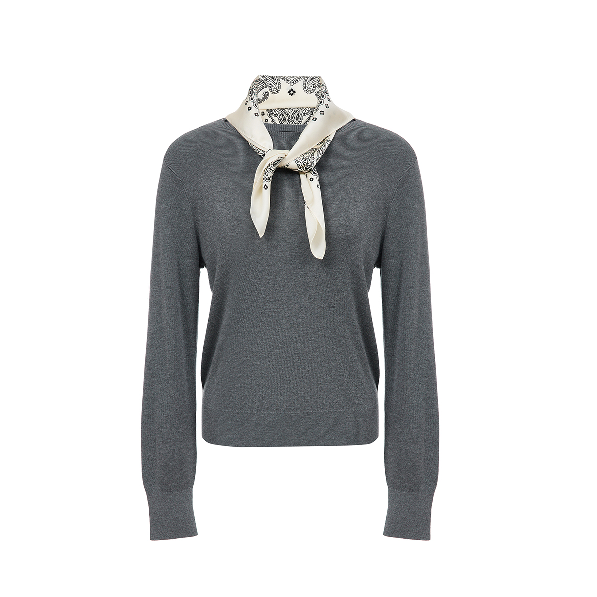 绫致Vero Moda针织衫2025秋季新款含莱赛尔三醋酯印花丝巾