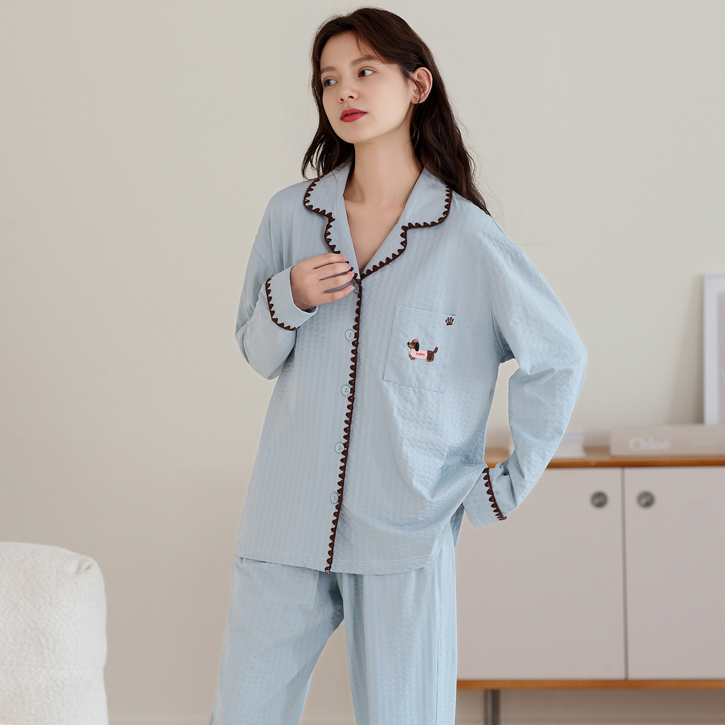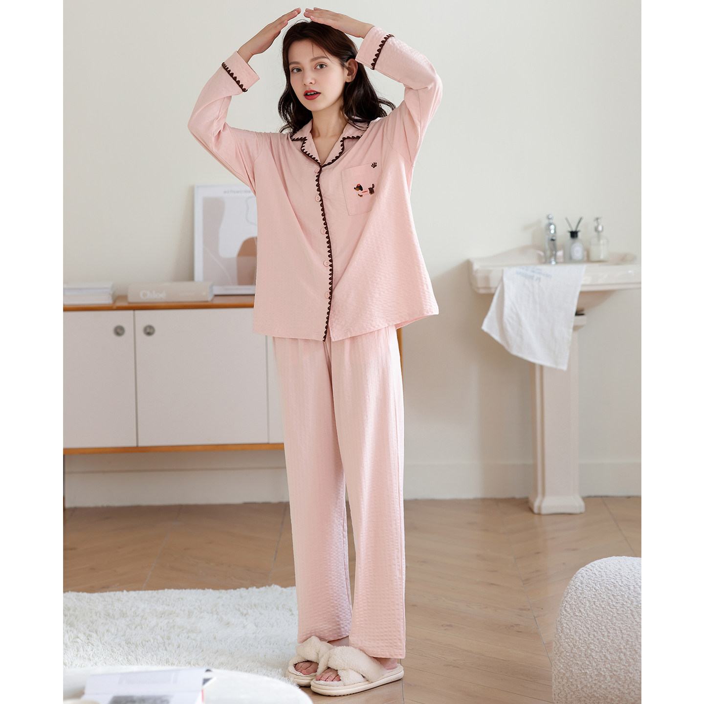 芬腾春秋季纯棉开衫长袖女士睡衣