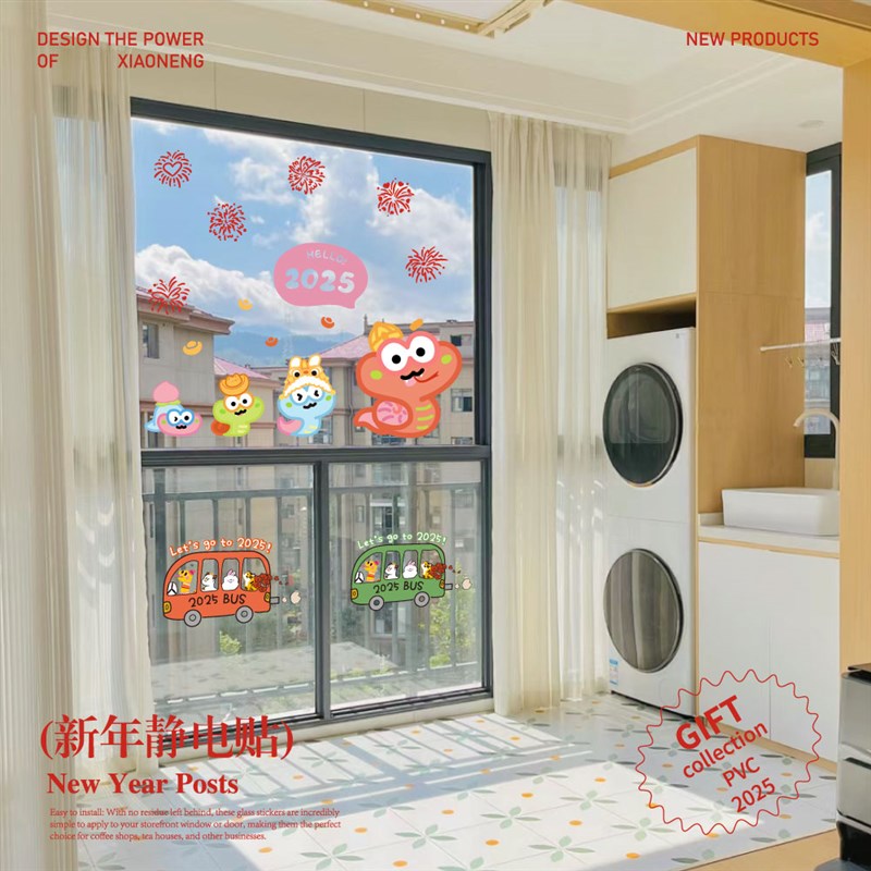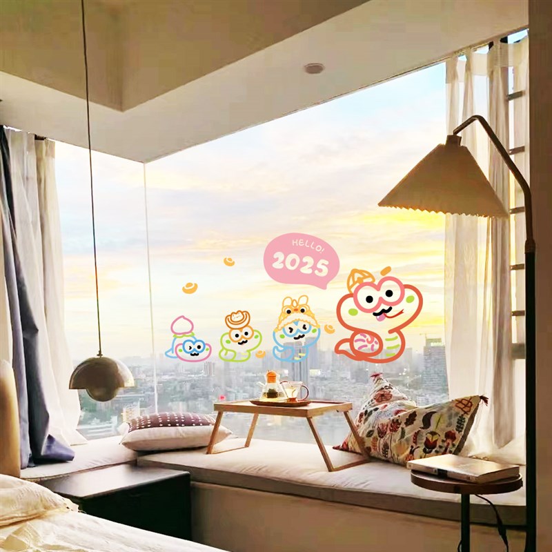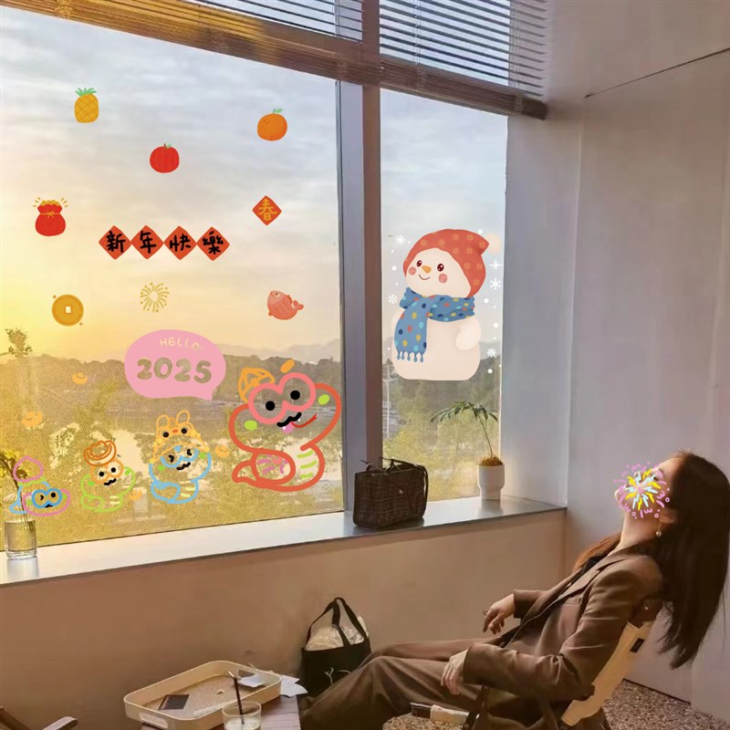 2025蛇年春节彩绘创意玻璃装饰静电贴新年家用玻璃门窗户氛围布置