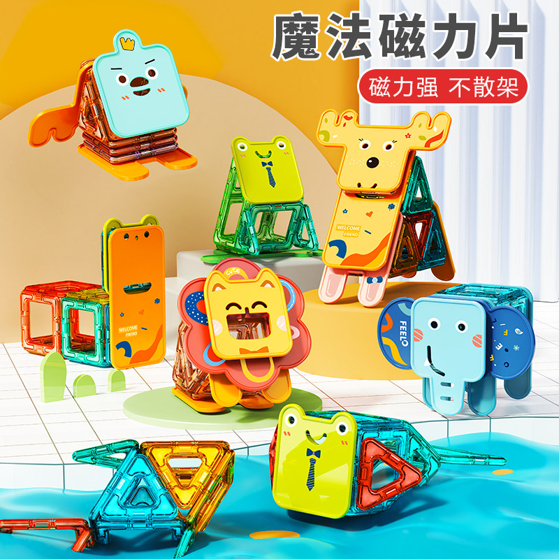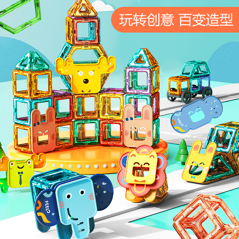 费乐磁力片儿童益智力玩具纯磁铁吸铁石彩窗拼装积木男女孩子拼图