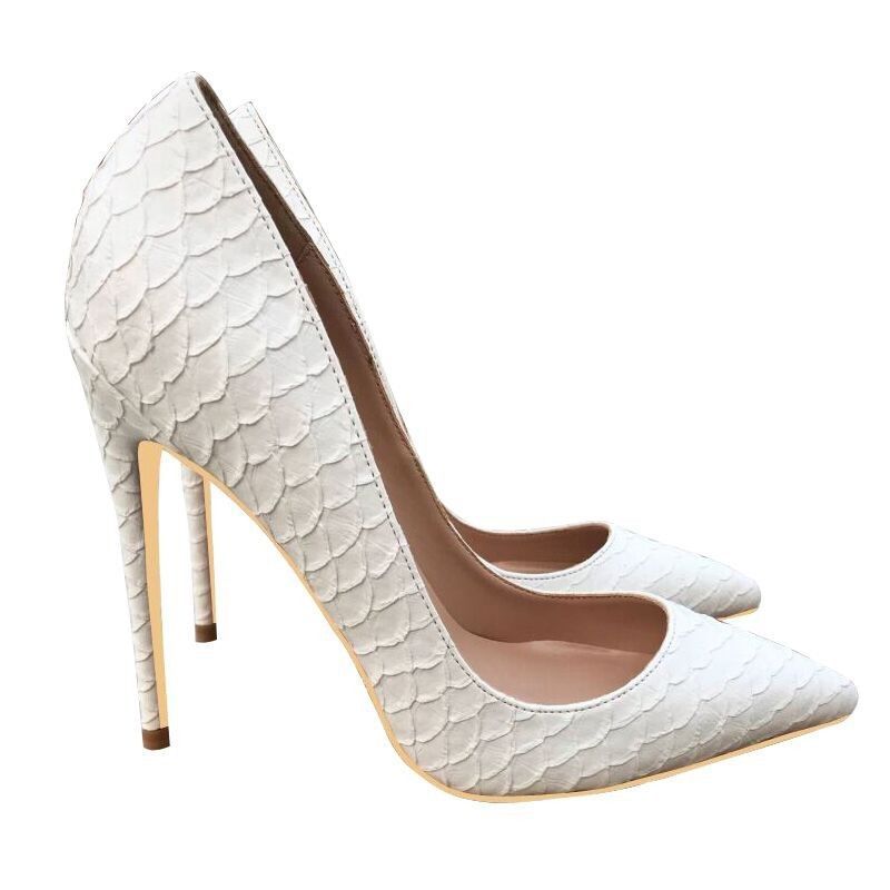 蛇皮纹高跟鞋女细跟12厘米单鞋黑色银色白色尖头女鞋性感女士