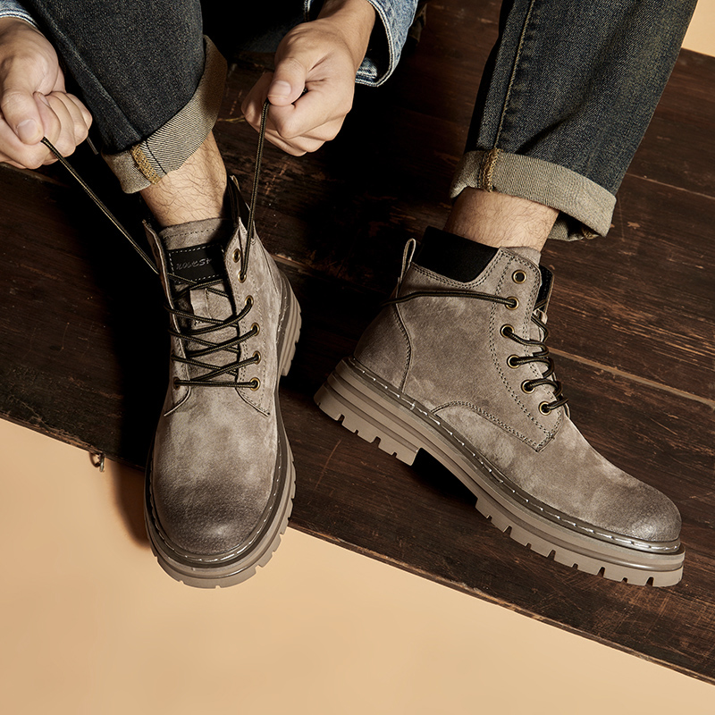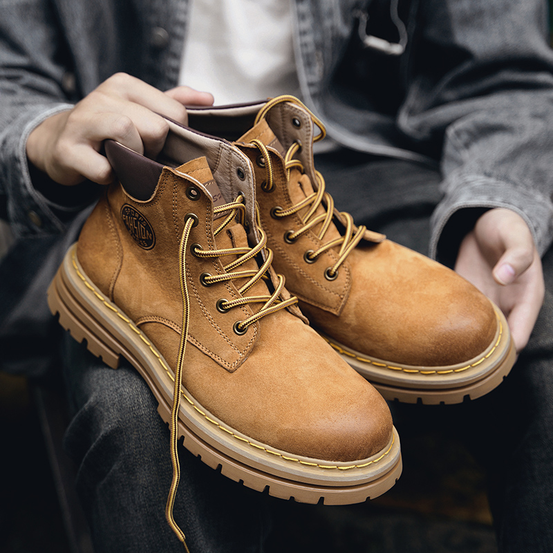 马丁靴男鞋2025新款秋冬季加绒棉复古英伦工装靴真皮大黄靴35小码