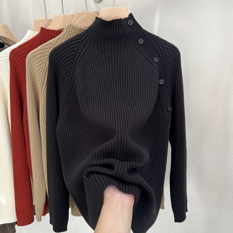 【80-200斤】半高领打底毛衣女秋冬大码胖妹妹显瘦纽扣设计上衣潮