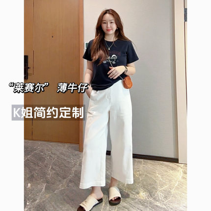 KK定制2025新款高腰显瘦直筒牛仔裤女夏季薄款宽松百搭九分阔腿裤