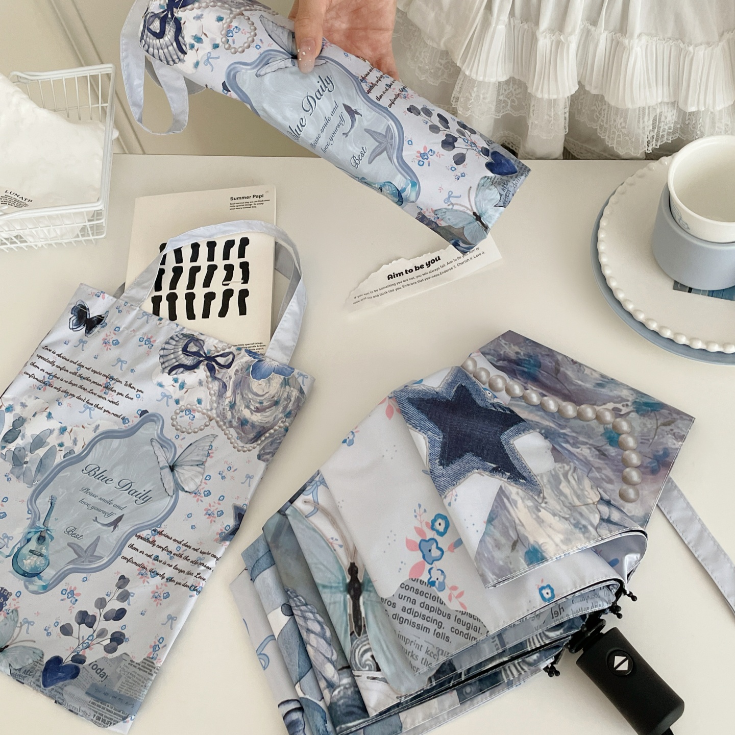 高级感ins碎花蝴蝶黑胶防晒晴雨伞两用折叠太阳伞便携遮阳伞女生
