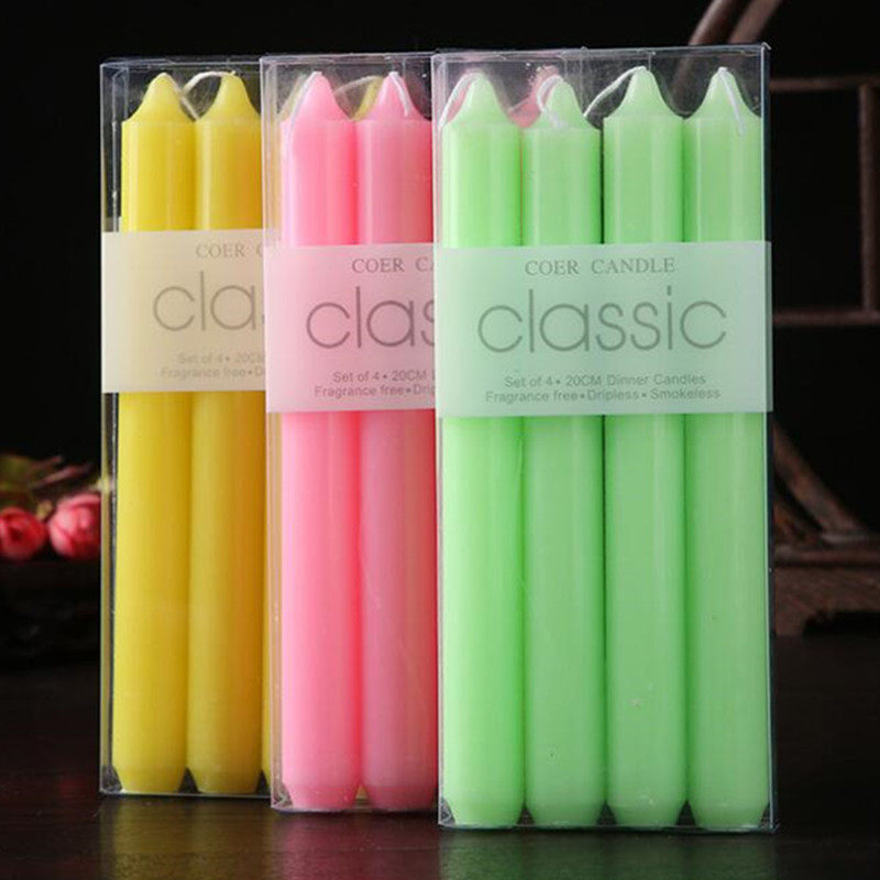 Classic无烟无味浪漫七彩烛光晚餐象牙白 黄绿紫绿红白色长杆蜡烛