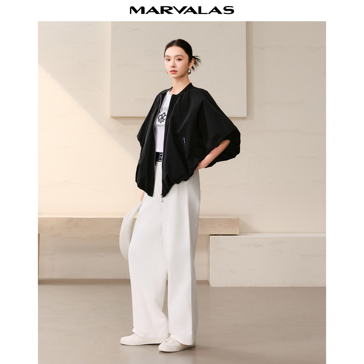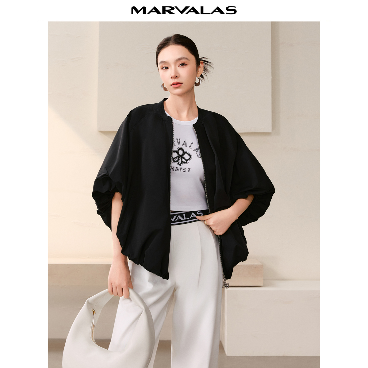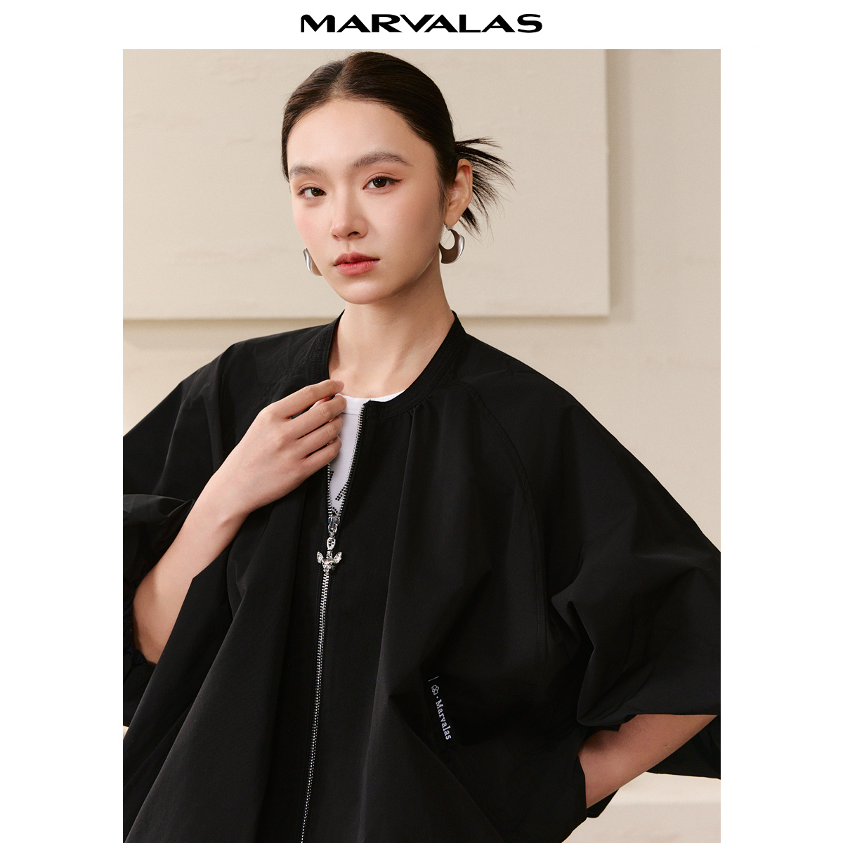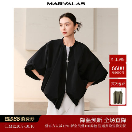 曼德诗纯色短外套2025秋季新款时尚斗篷式A摆廓形不规则设计上衣