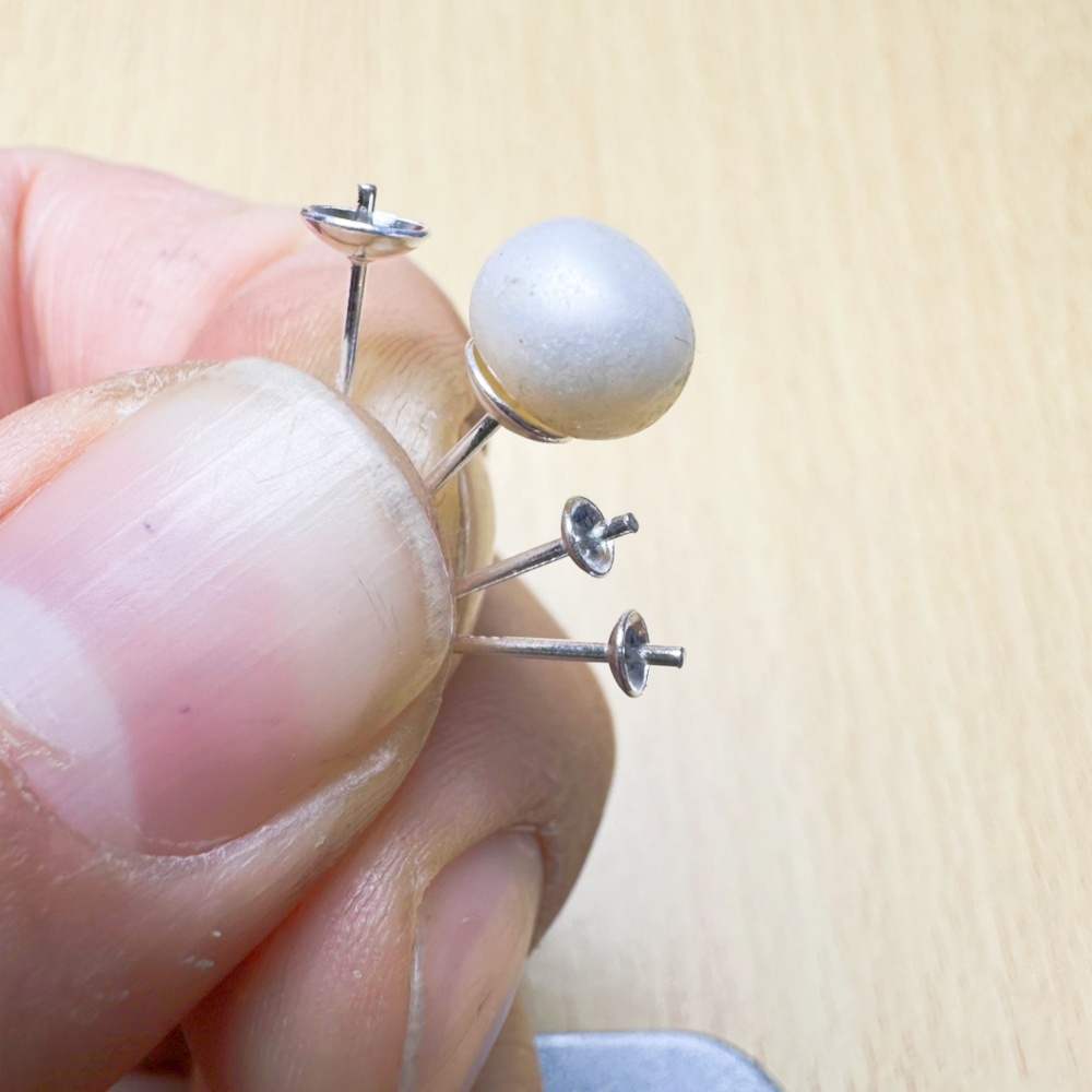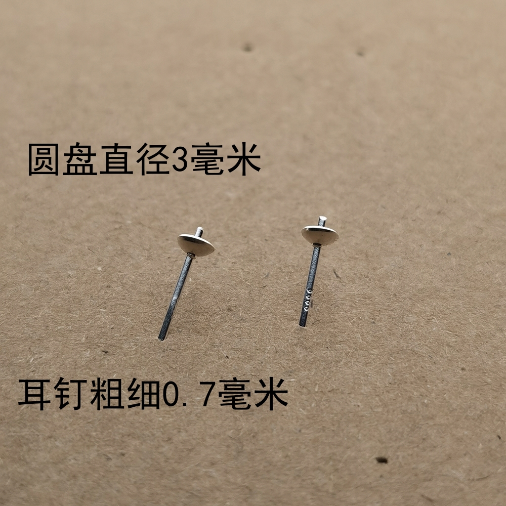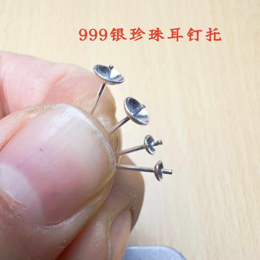 999纯银耳钉空托凹头珍珠托银色耳针珠盘配件手工DIY耳环饰品碗针