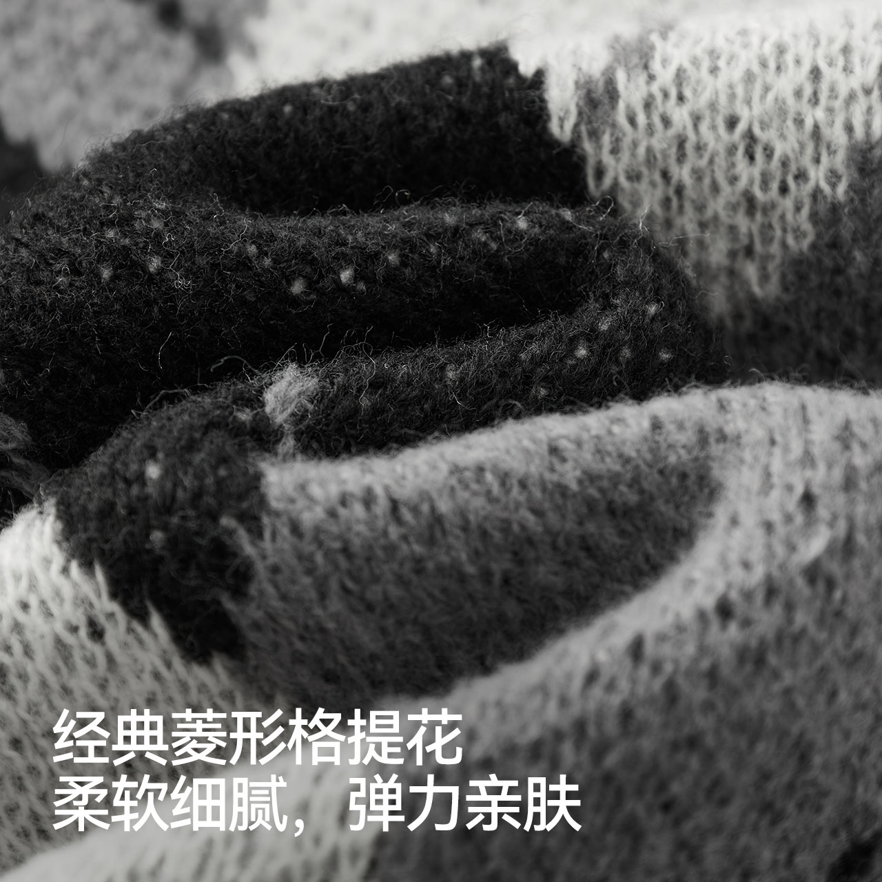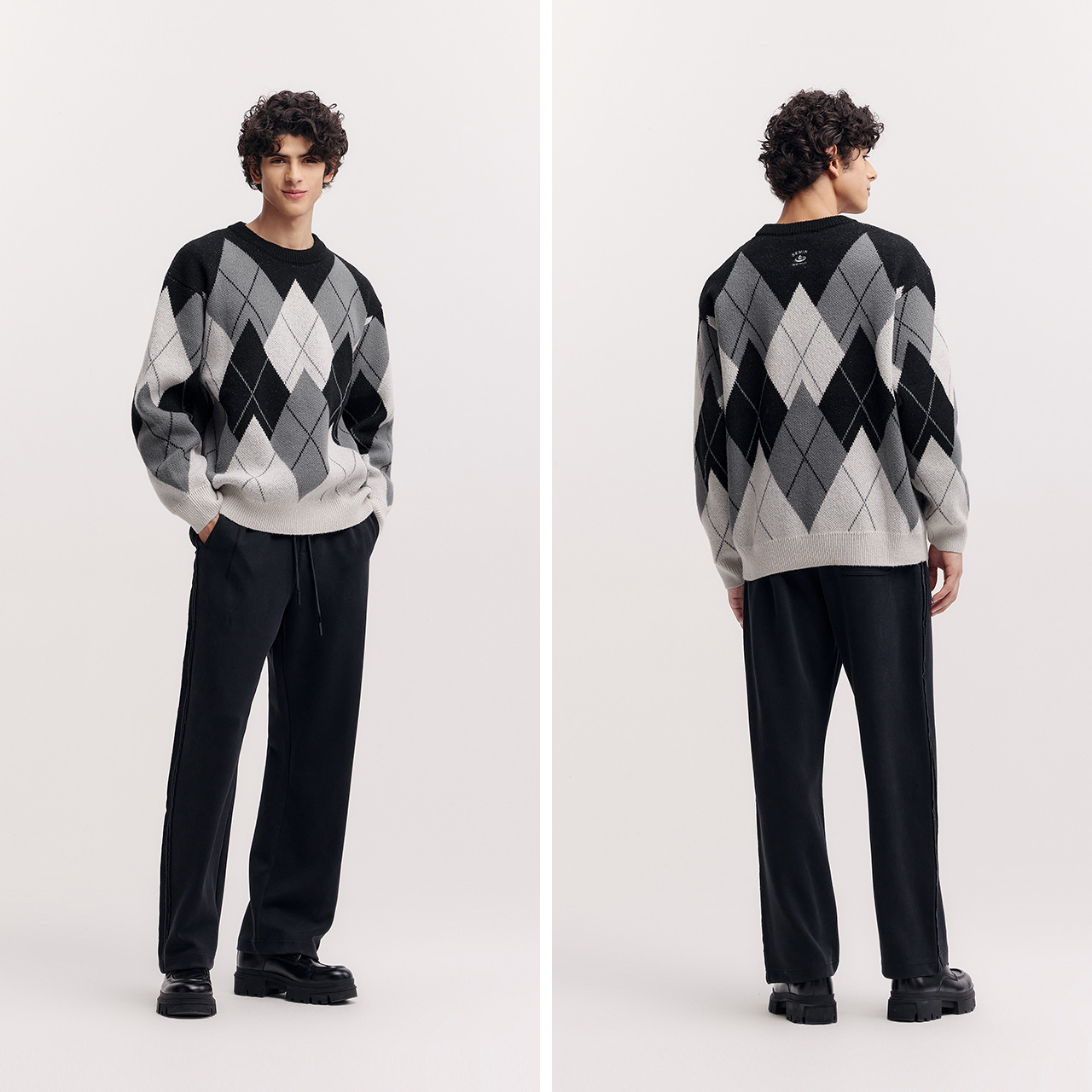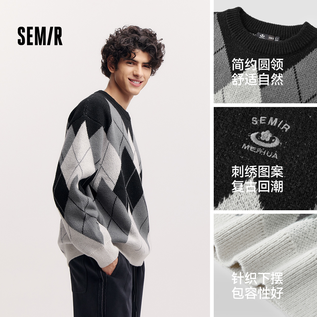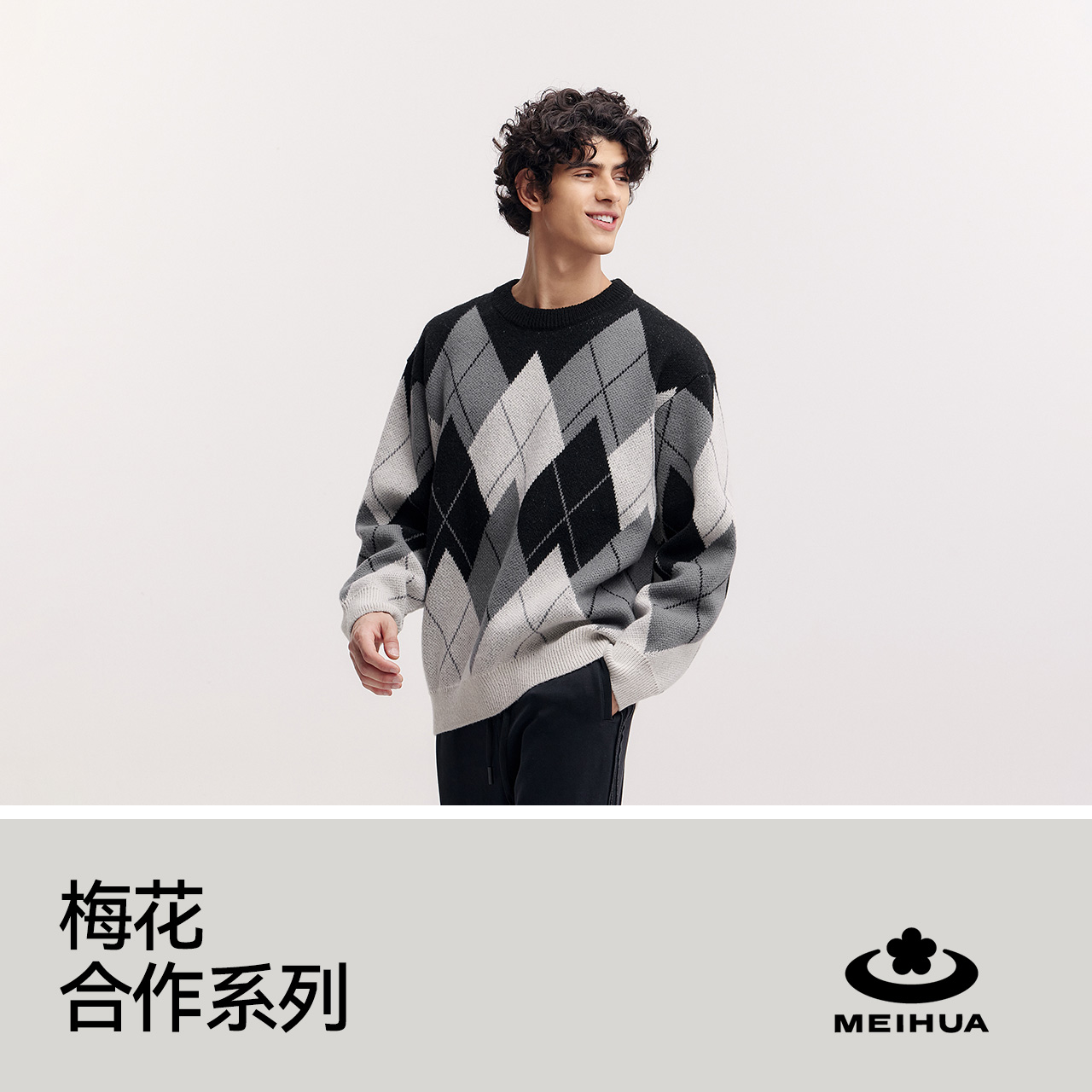 森马梅花系列毛衫男冬季撞色菱格提花针织衫经典复古情侣毛衣宽松