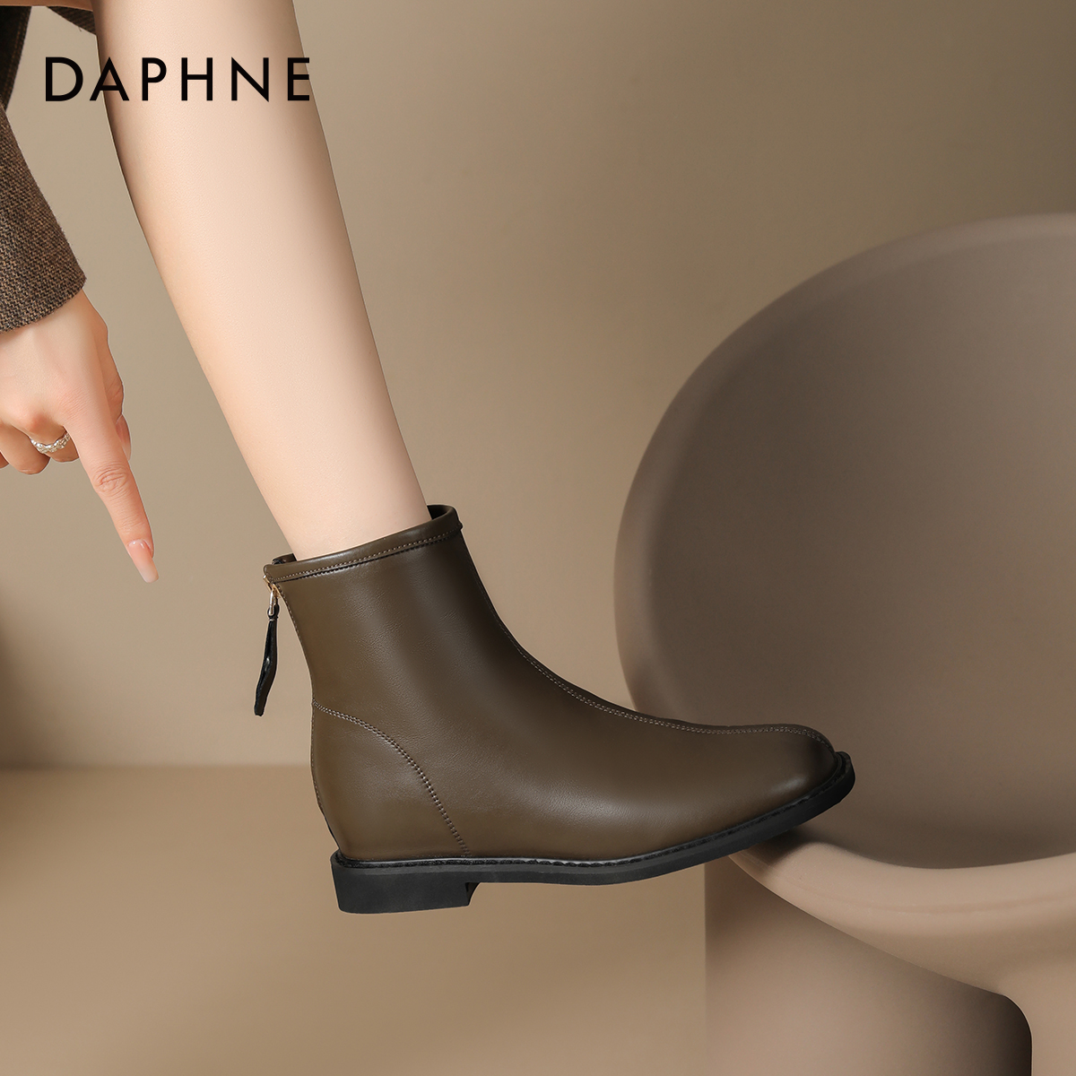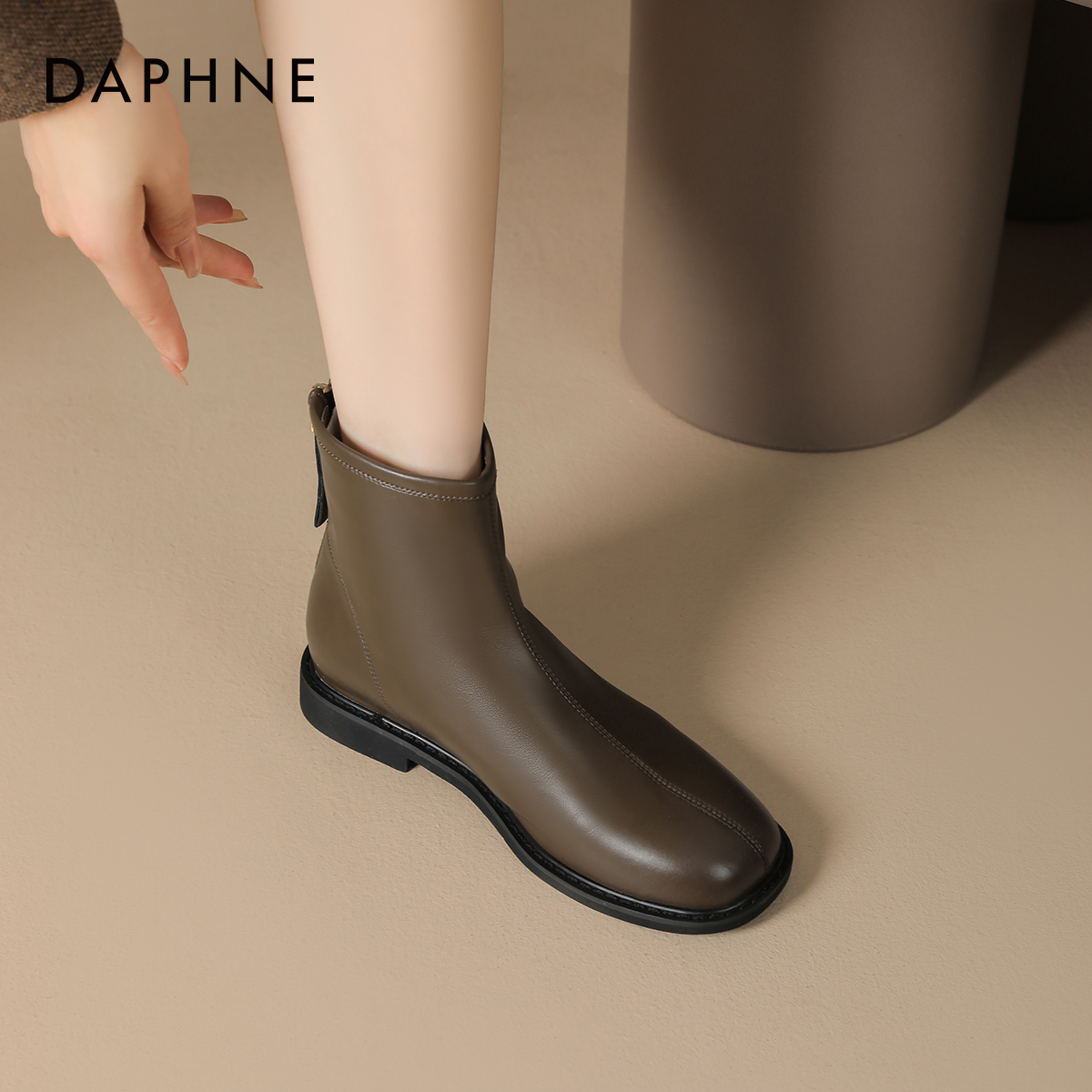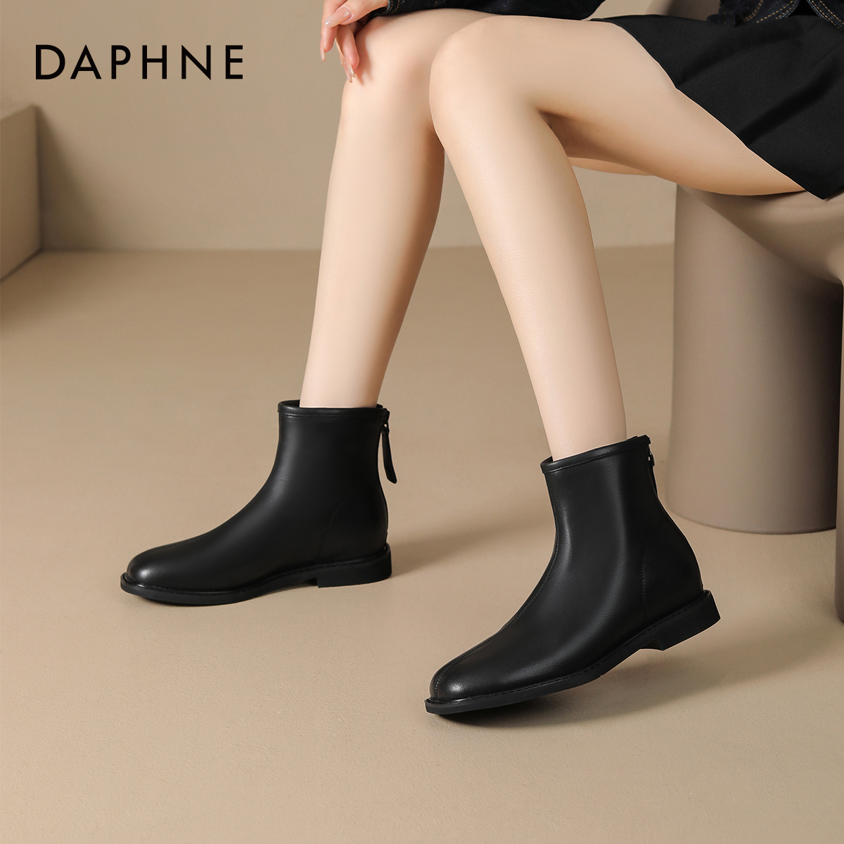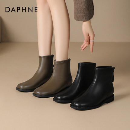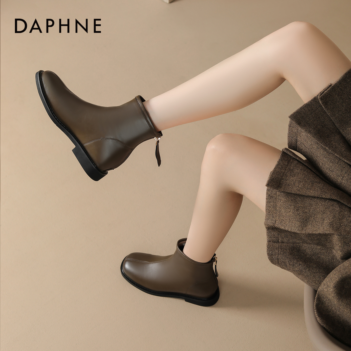 达芙妮小短靴女2025新款平底妈妈靴子秋季真皮踝靴春秋皮鞋马丁靴