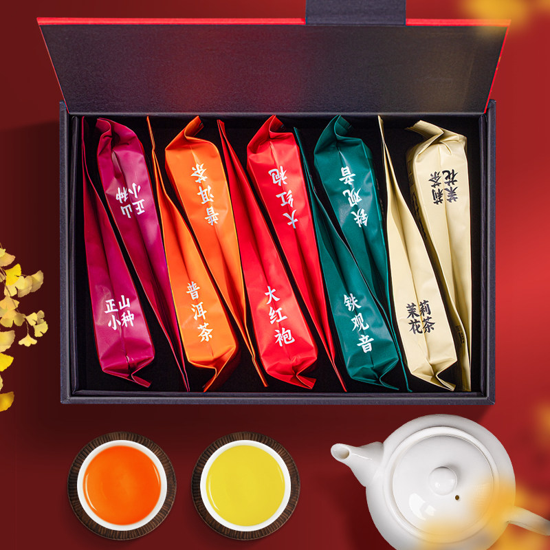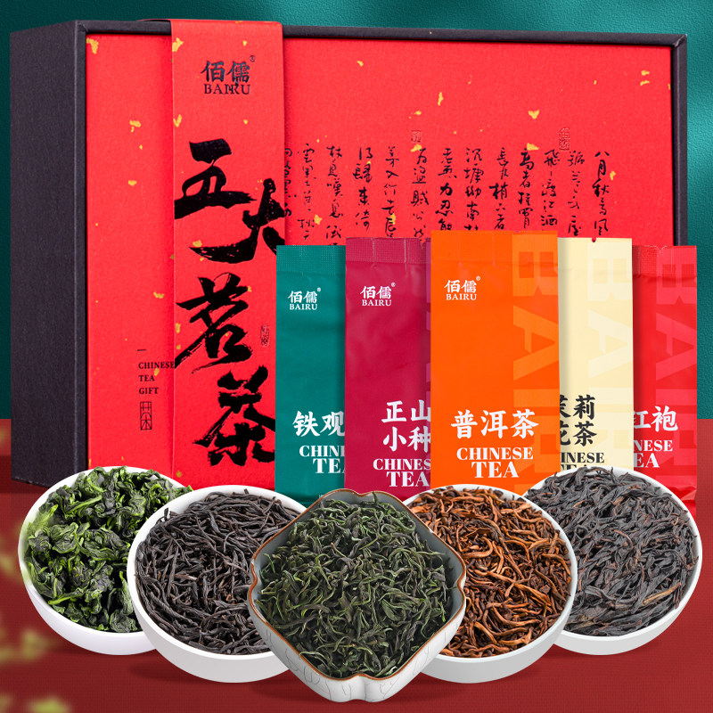 佰儒 五大茗茶组合 铁观音正山小种普洱茶大红袍茉莉花茶72g