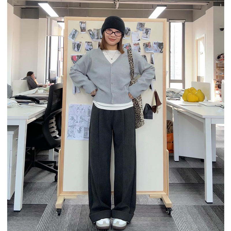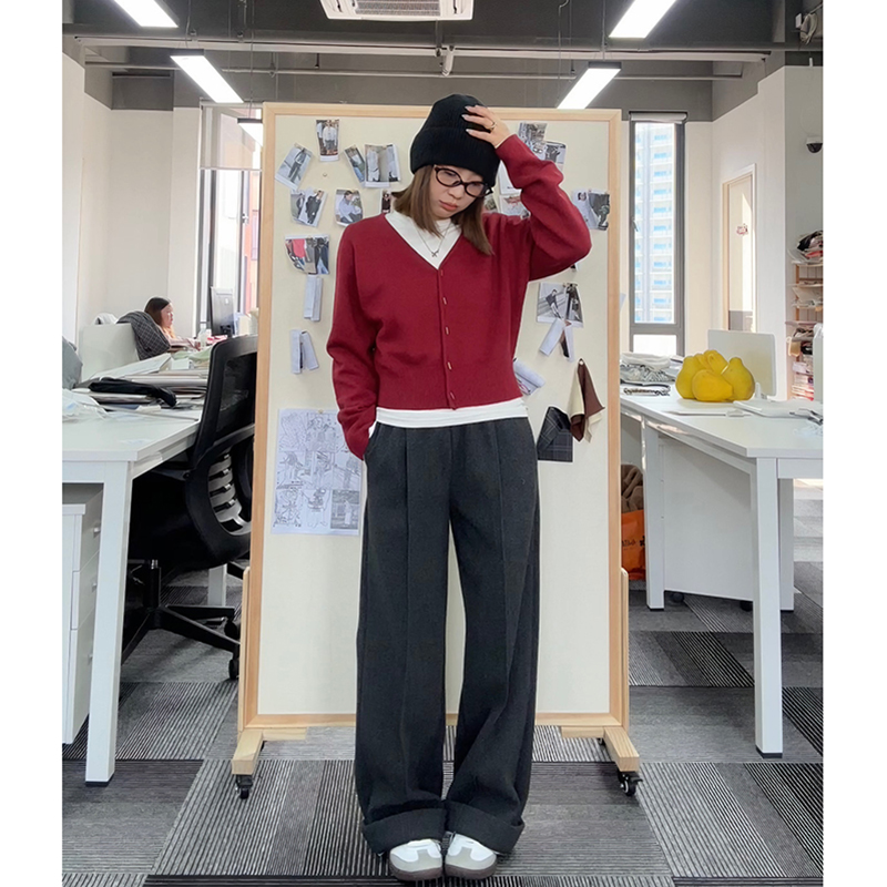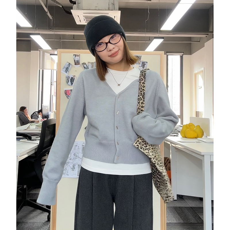 Our2复古休闲V领针织开衫上衣女春季2024新款韩版毛衣外套小衫潮