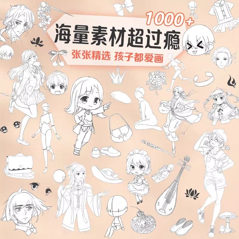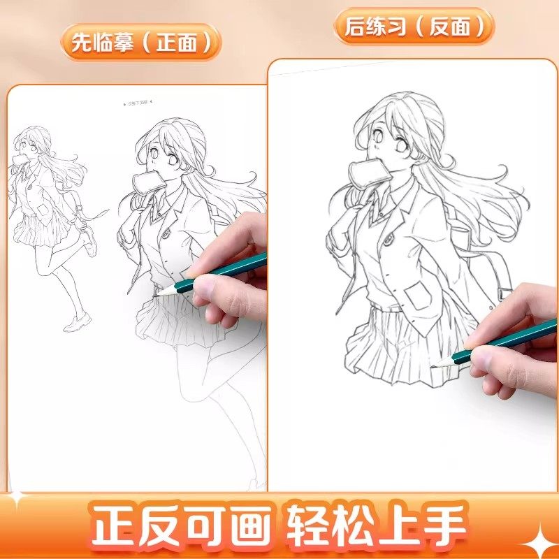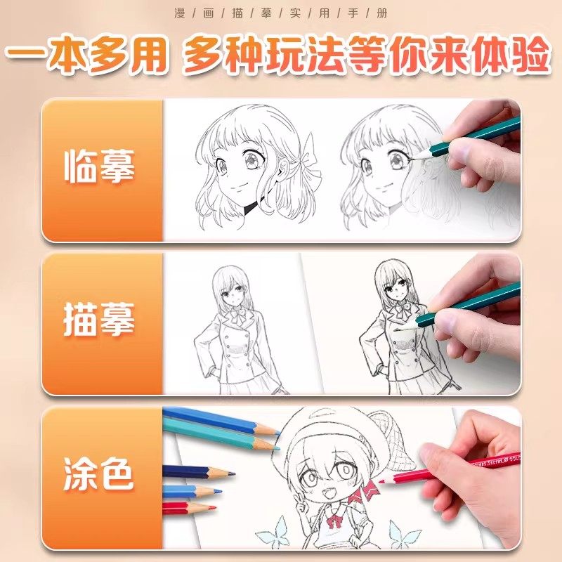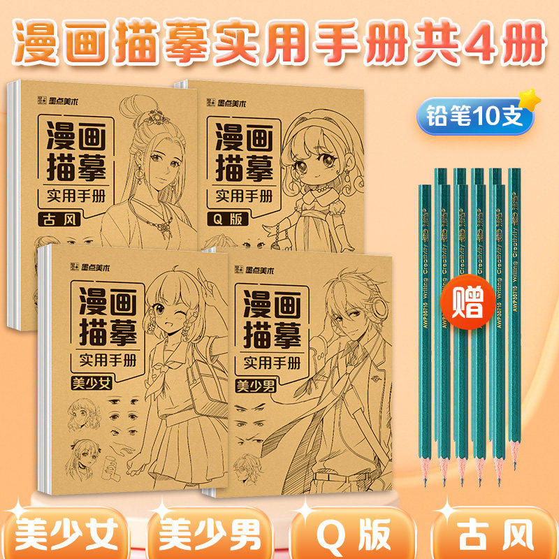 墨点美术漫画描摹实用本手册 漫画手绘临摹本涂色学画基础画本古风 Q版美少男女孩动漫人物教程书枪械武器机甲勇士素线描卡通画册