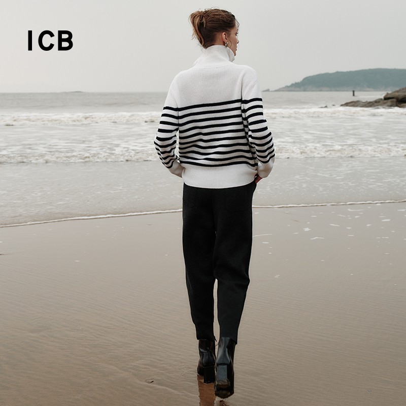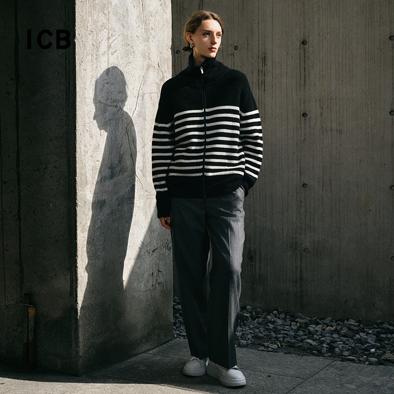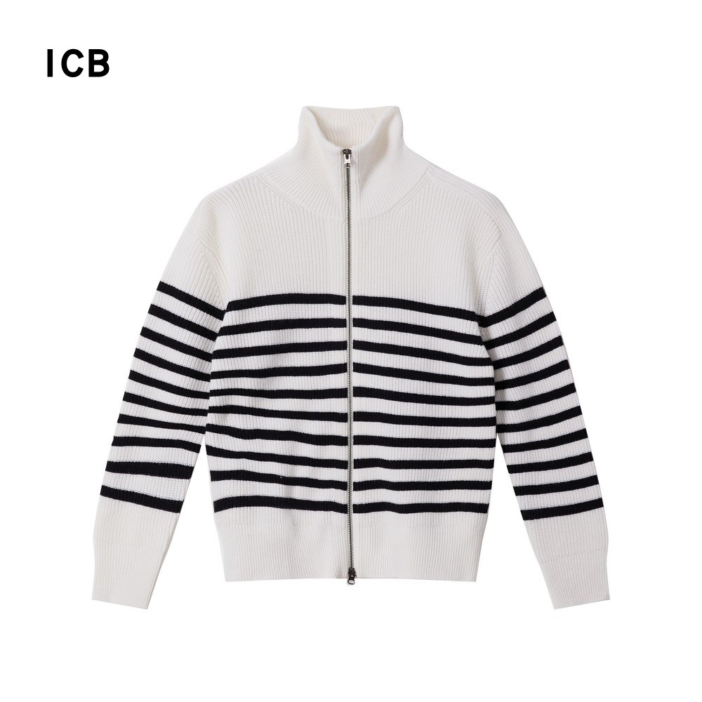 ICB日系春季通勤羊毛羊绒混纺高领针织毛衣开衫编织衫商场同款
