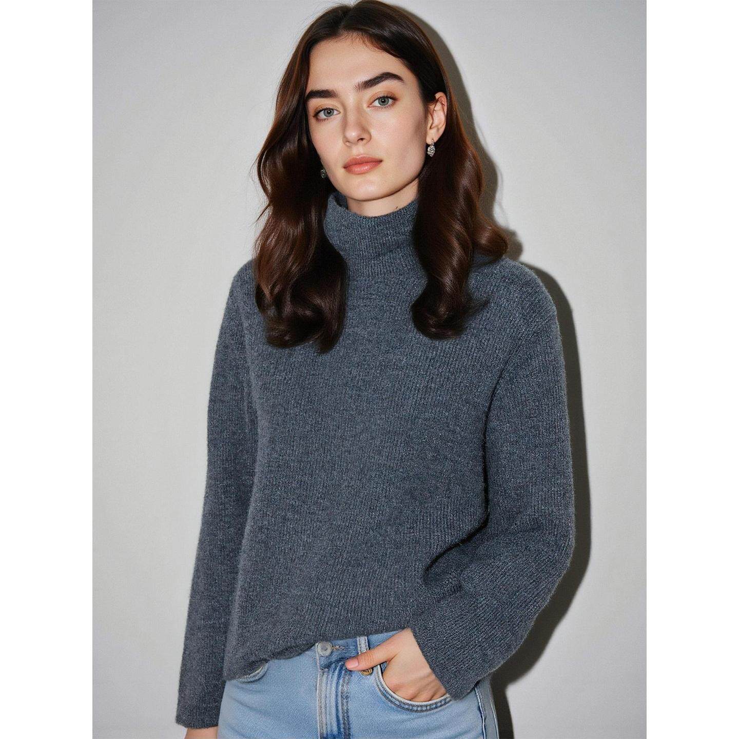 Basic House/百家好灰色高领羊毛针织衫女冬季高级感加厚打底毛衣