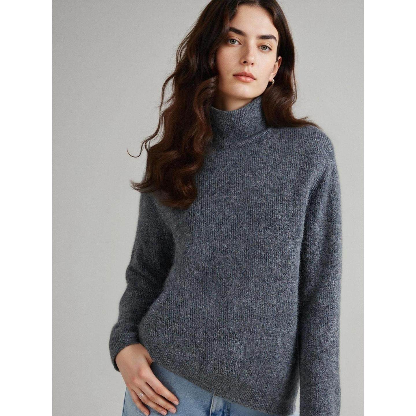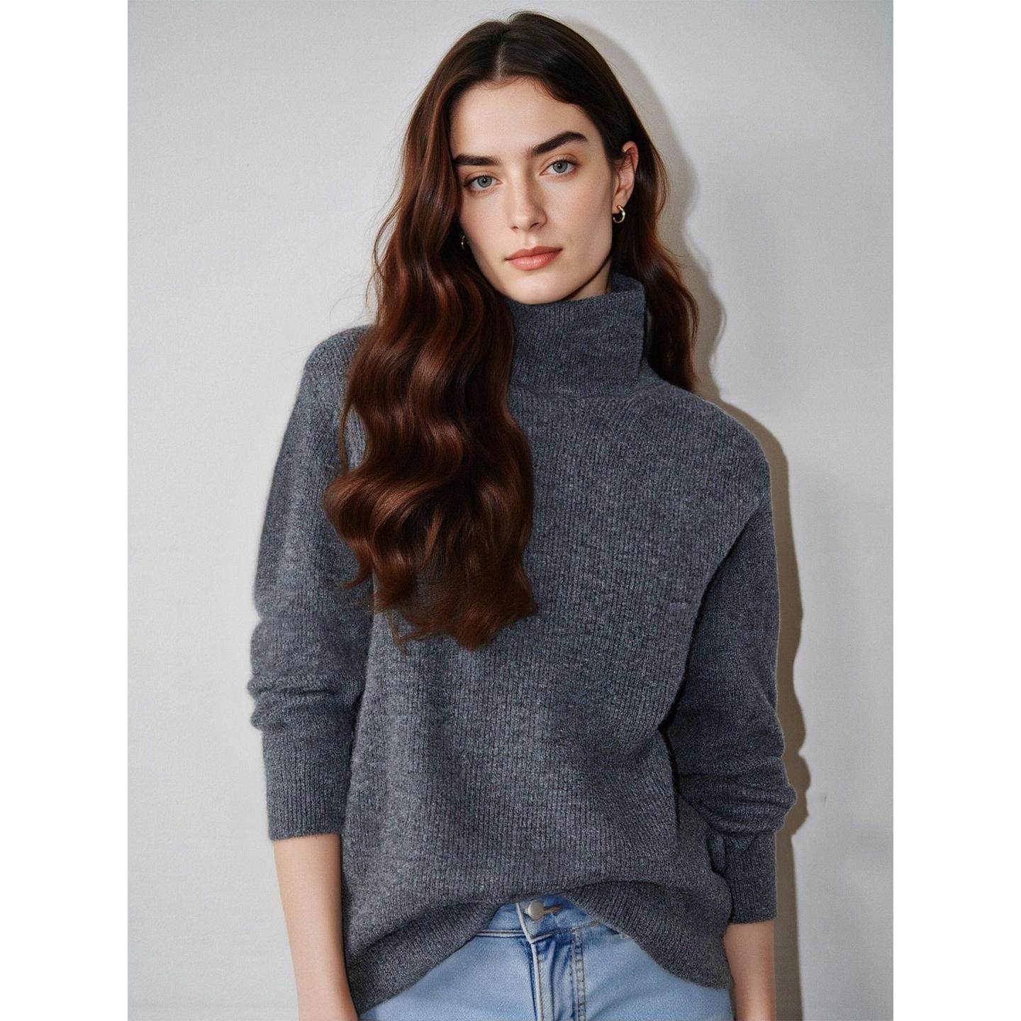 百家好高级感灰色高领羊毛针织衫