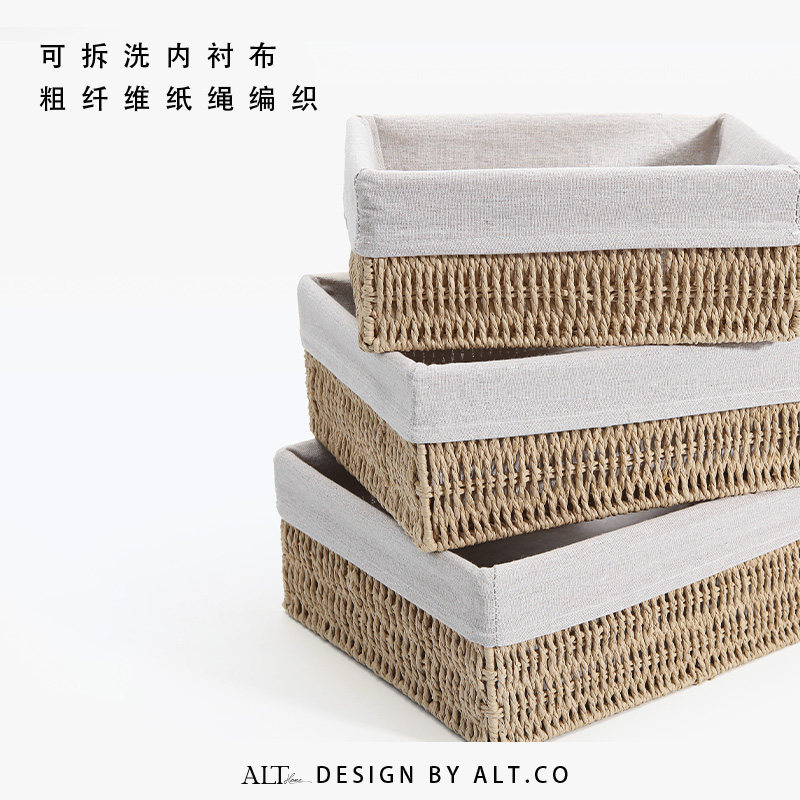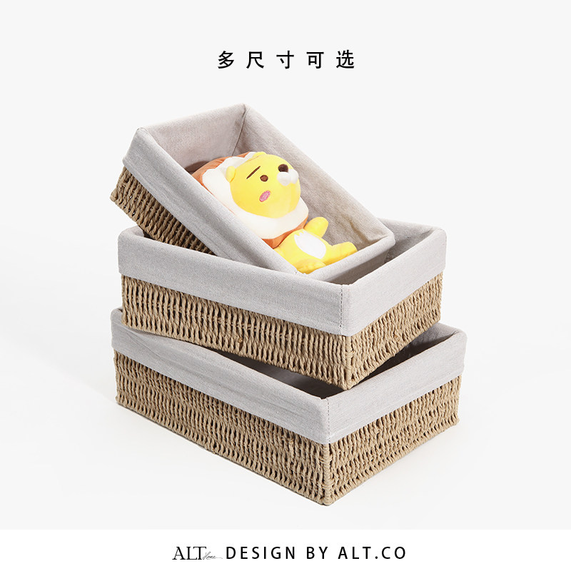 办公室桌面杂物收纳筐仿藤编客厅零食储物盒收纳篮高档首饰收纳盒