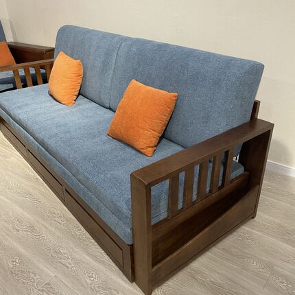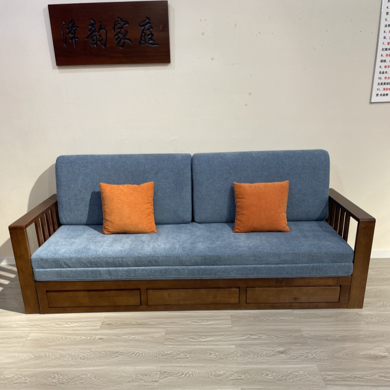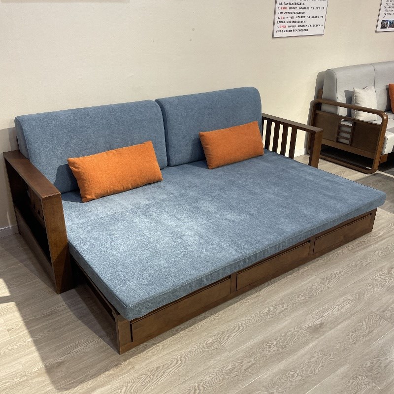 现代简约实木沙发床多功能两用单人双人小户型客厅橡木伸缩推拉床