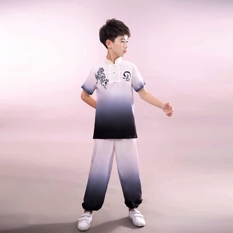 儿童武术表演服短袖练功服男女童功夫演出服中小学生太极训练服装