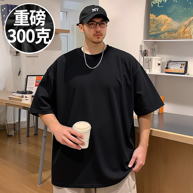 重磅300g纯棉胖子男装加肥加大码夏季半袖短袖T恤情侣内搭打底衫