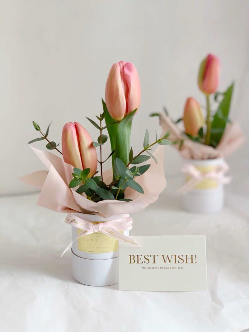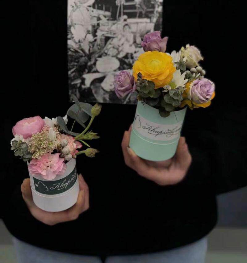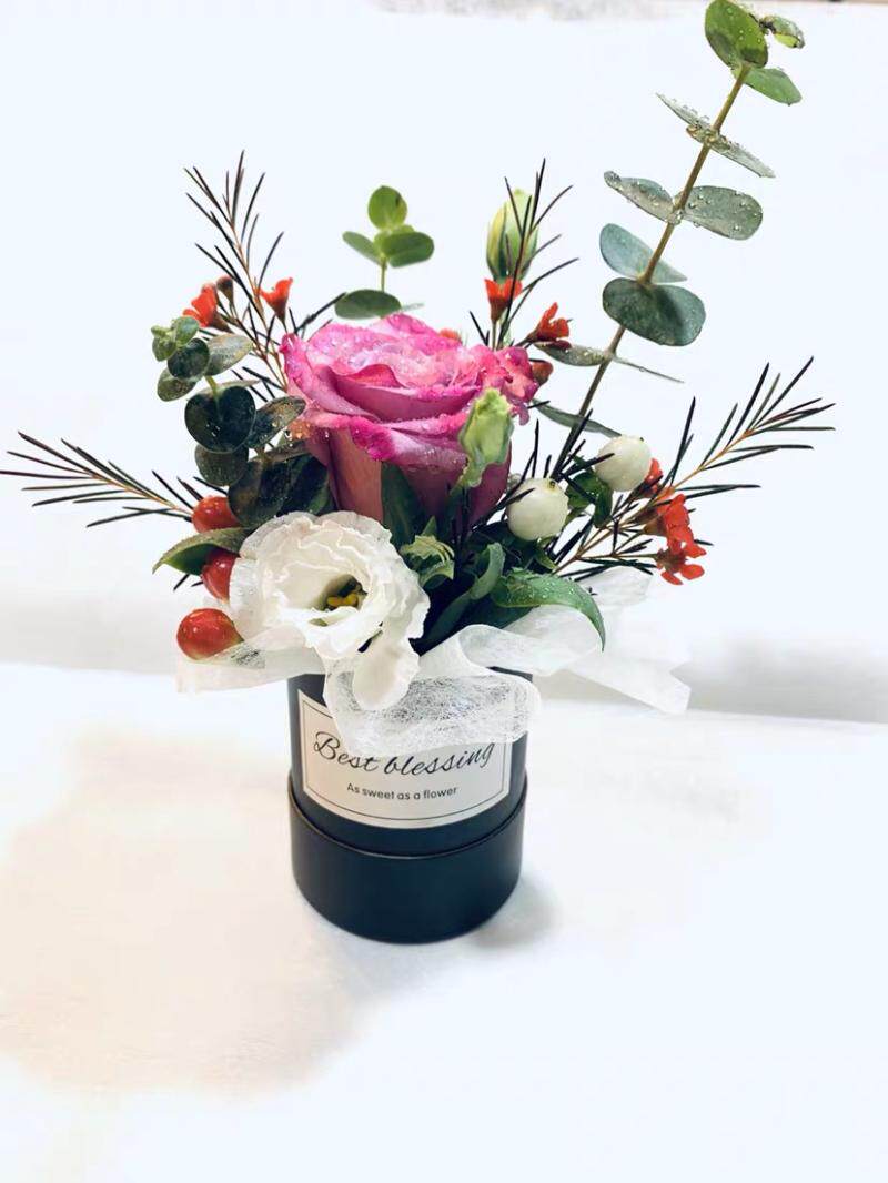 迷你小圆筒女神节花盒鲜花圆形简易礼盒手提袋内置盒摆台小礼盒