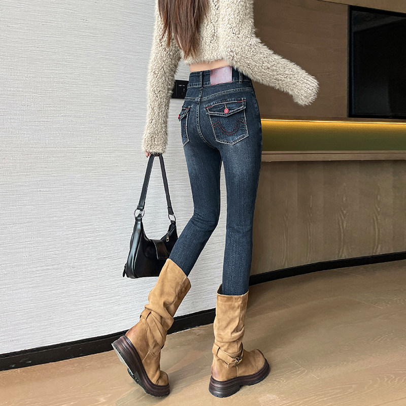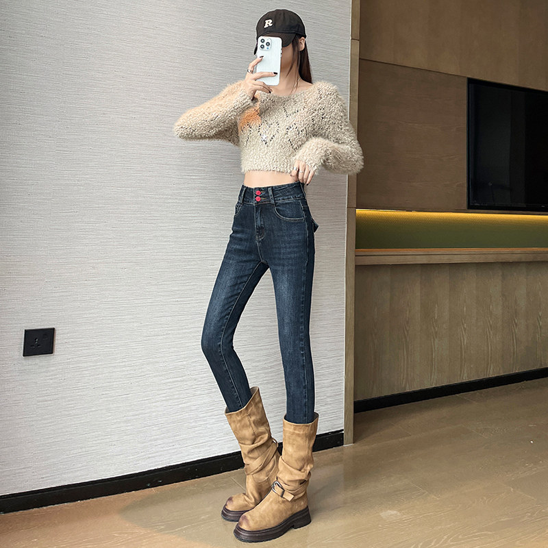 2025新款高腰紧身小脚牛仔裤女秋季收腹提臀显瘦长裤加厚修身显瘦