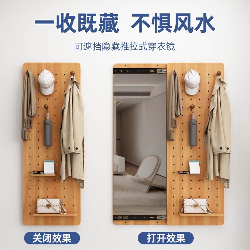 新款隐形全身镜实木推拉隐藏穿衣镜壁挂贴墙可遮挡关闭洞洞板试衣