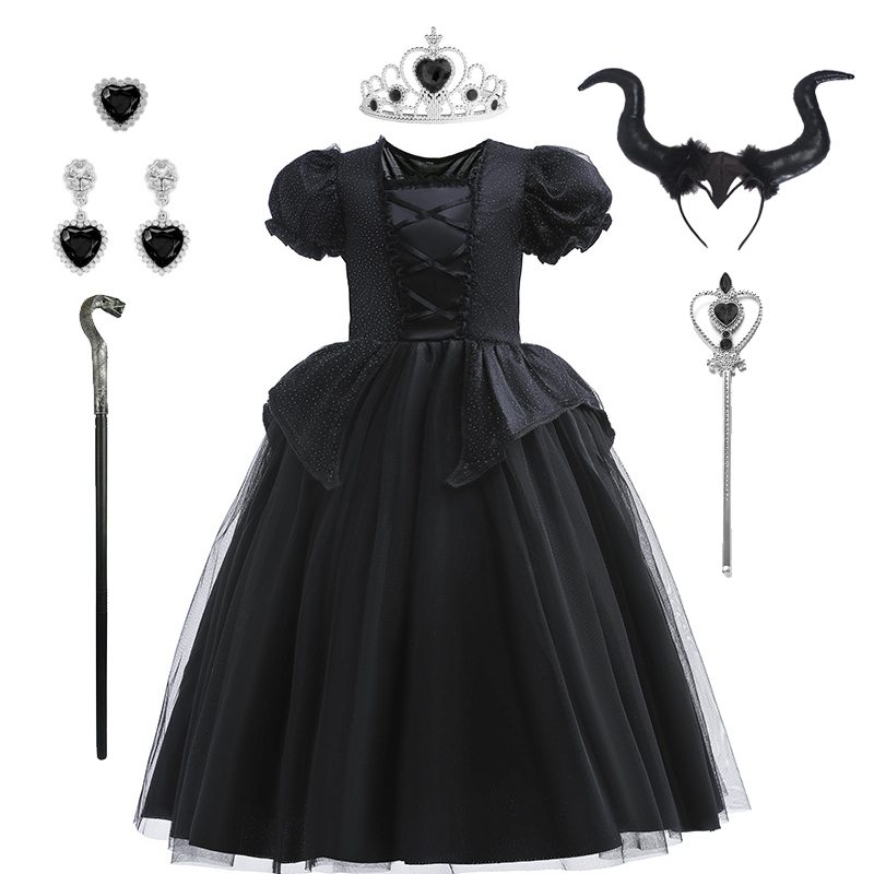女童沉睡女巫公主裙cosplay恶魔演出服万圣节角色扮演服装黑色裙