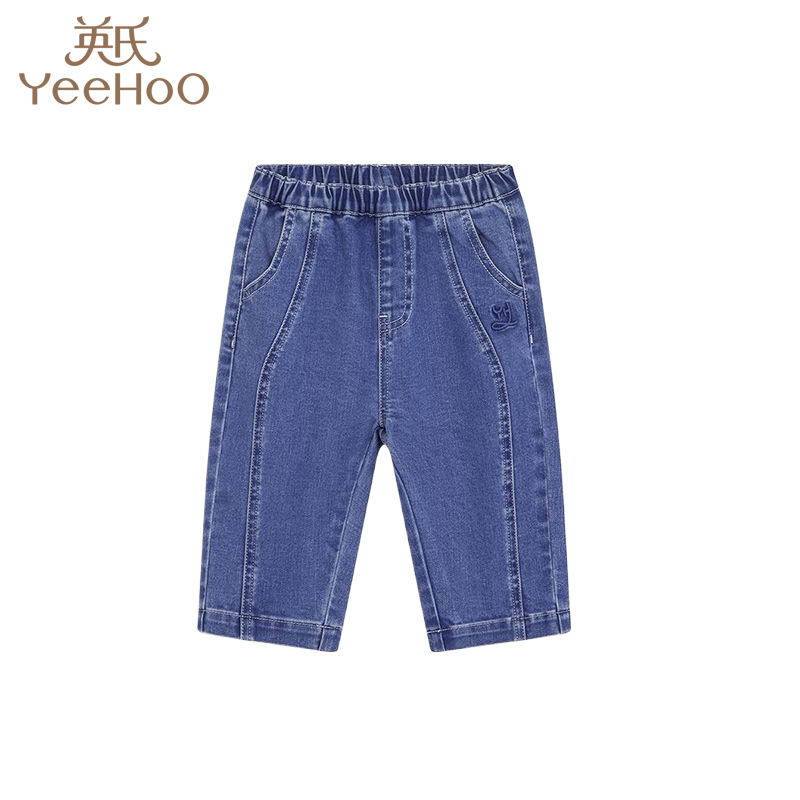 英氏春秋款婴幼儿男宝宝童针织休闲运动束脚卫牛仔长裤子