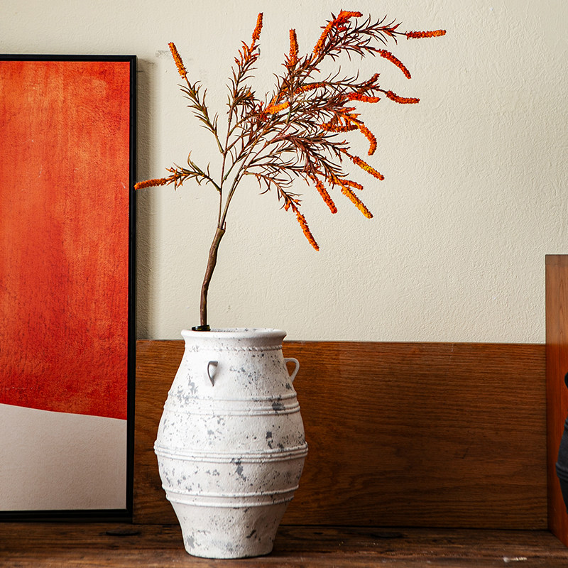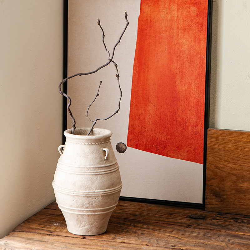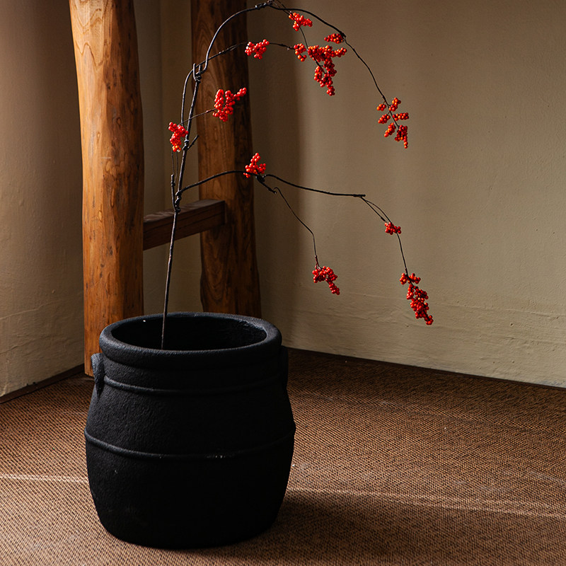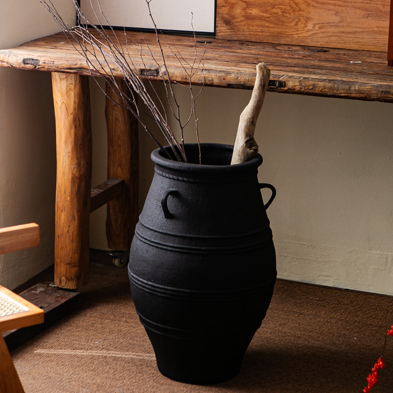复古花壶瓶老式土陶罐镁泥花盆花器民宿侘寂风黑金刚落地装饰摆件