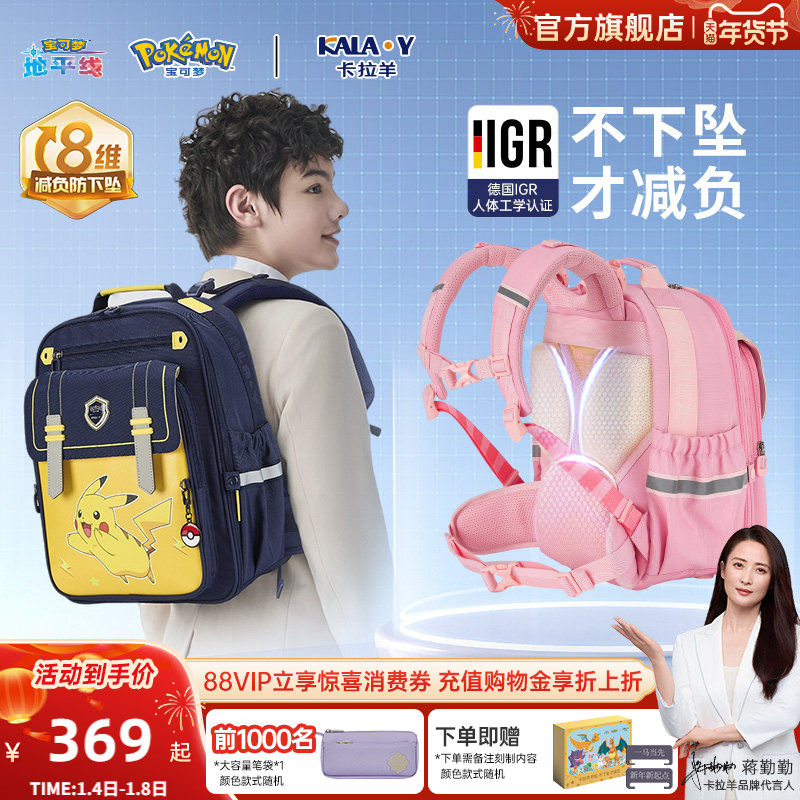 【宝可梦联名款】卡拉羊小学生8维减负防下坠云朵书包ProMax护脊