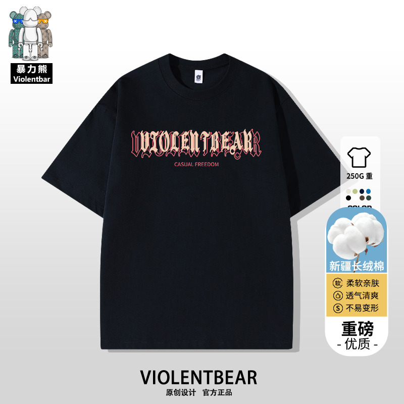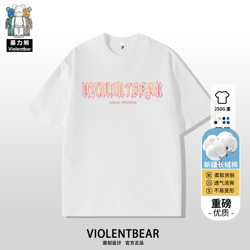 【暴力熊】官方升级新疆长绒棉250克重磅短袖T恤男夏美式宽松上衣