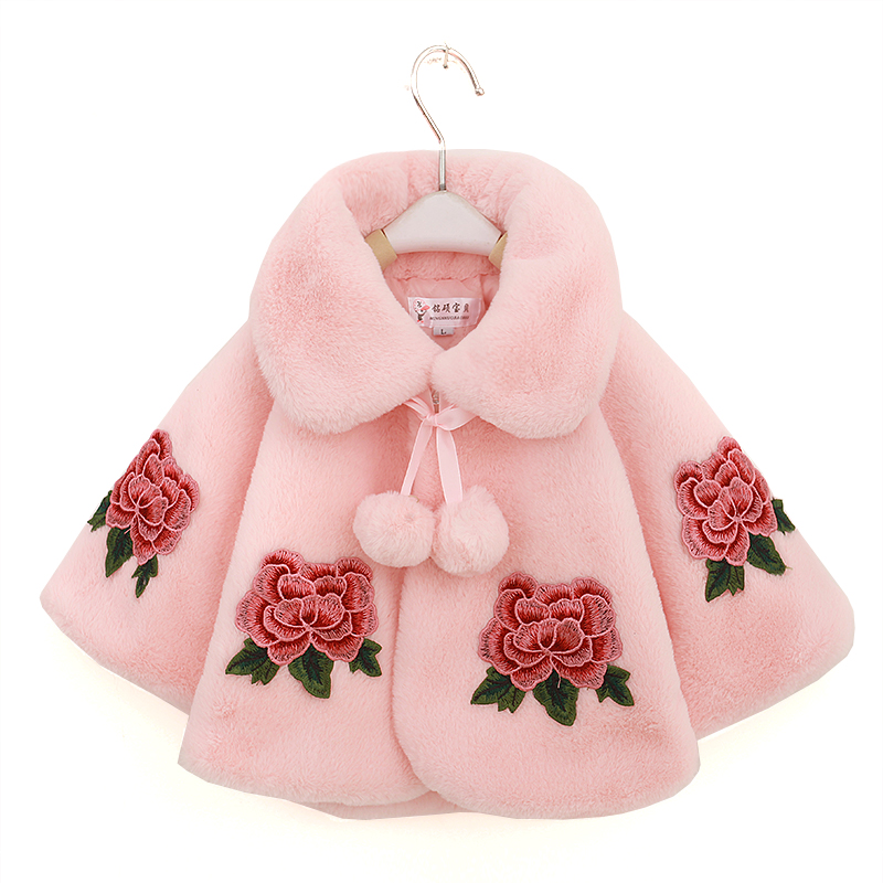 中小童冬季儿童礼服百搭披风女宝宝斗篷外套女童公主仿皮草披肩