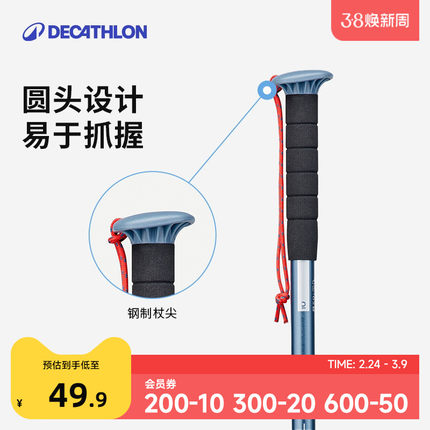 迪卡侬户外登山可伸缩徒步多功能登山杖爬山轻便女手杖ODAB