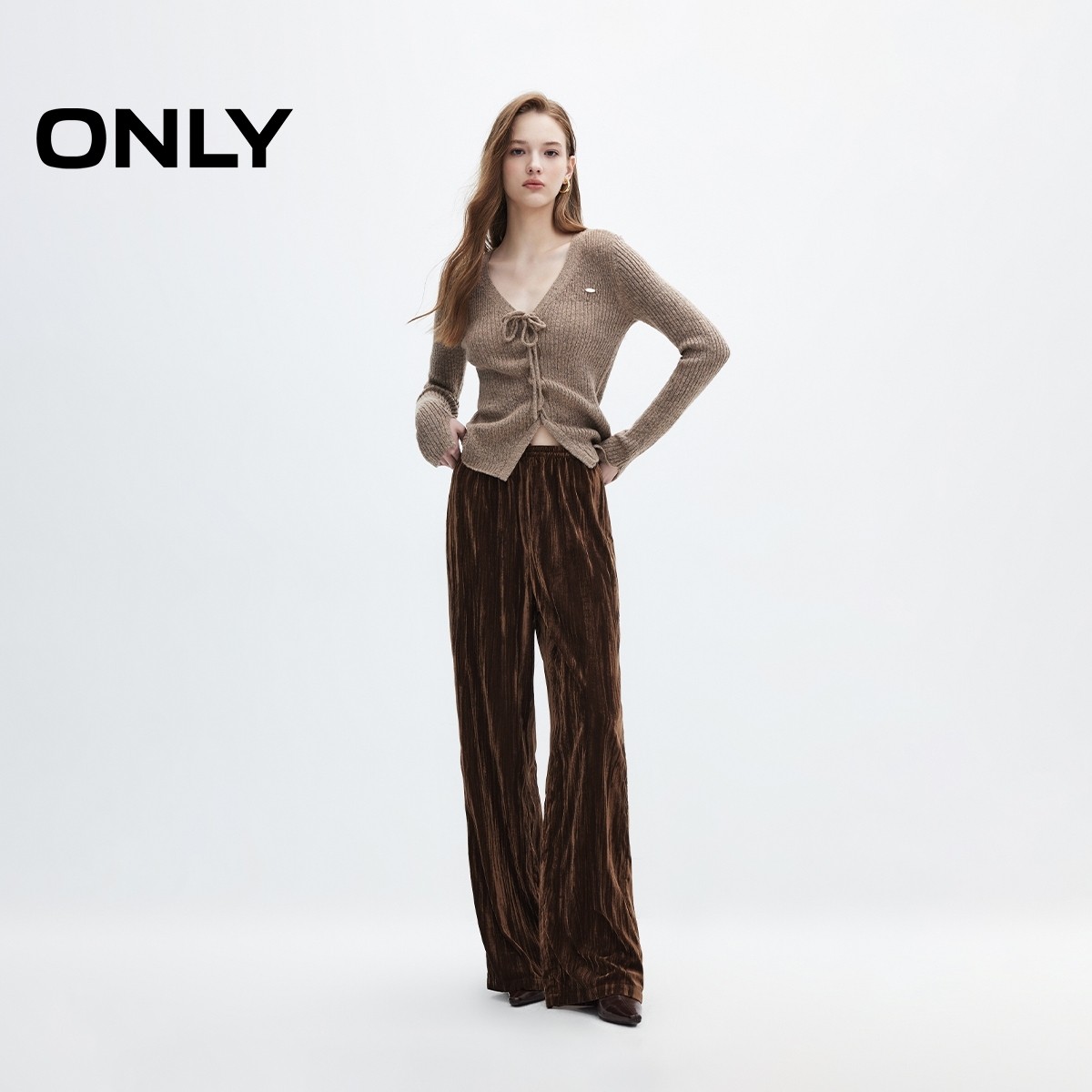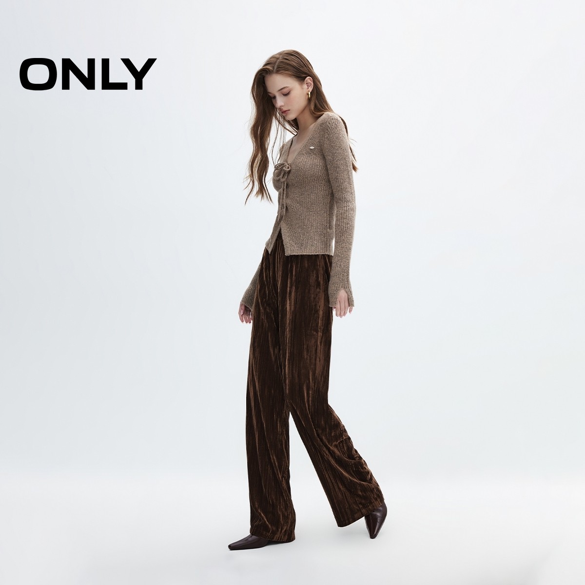 【ONLY奥莱】秋冬宽松丝绒松紧腰高腰休闲裤女