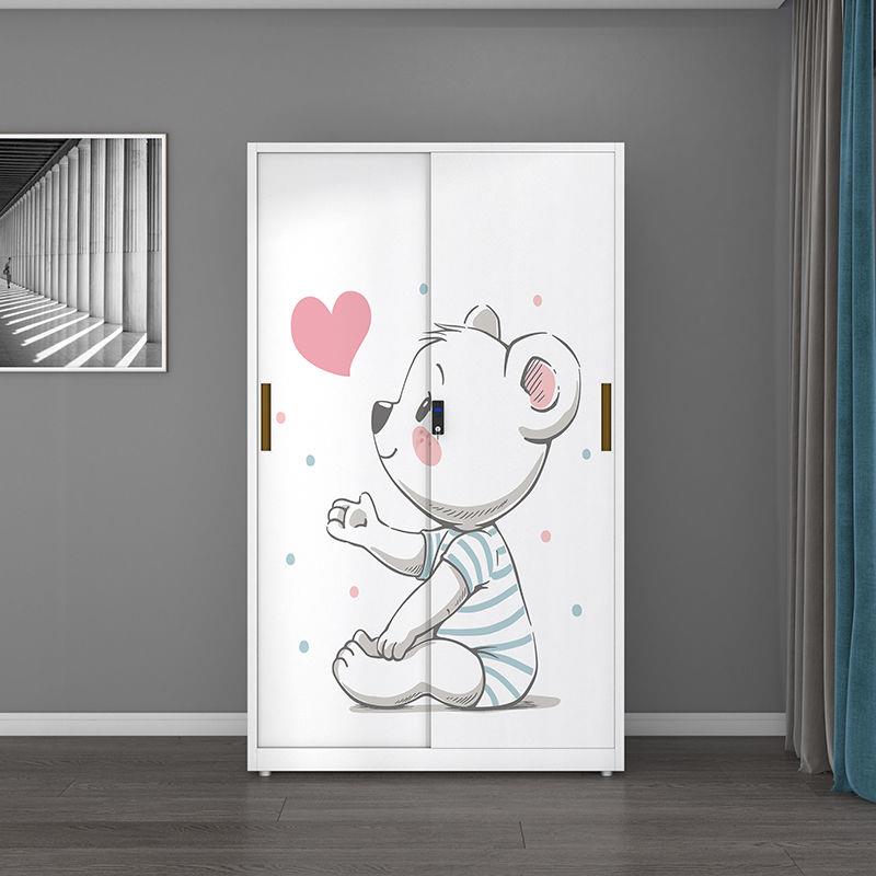 铁皮衣柜家用卧室推拉门大容量储物收纳柜带锁钢制儿童简易大衣橱