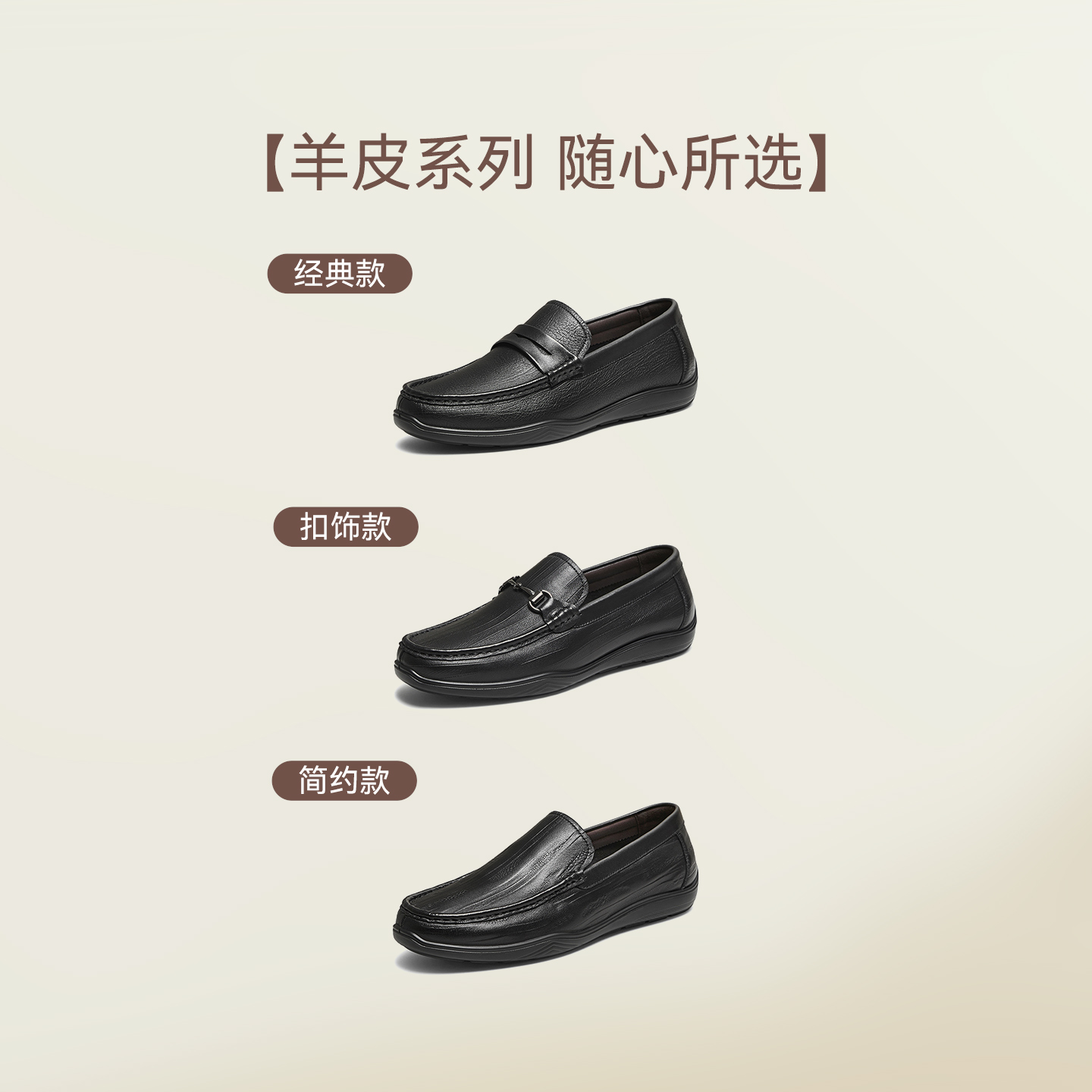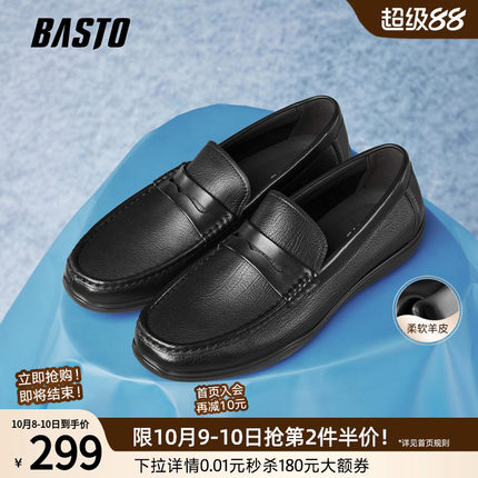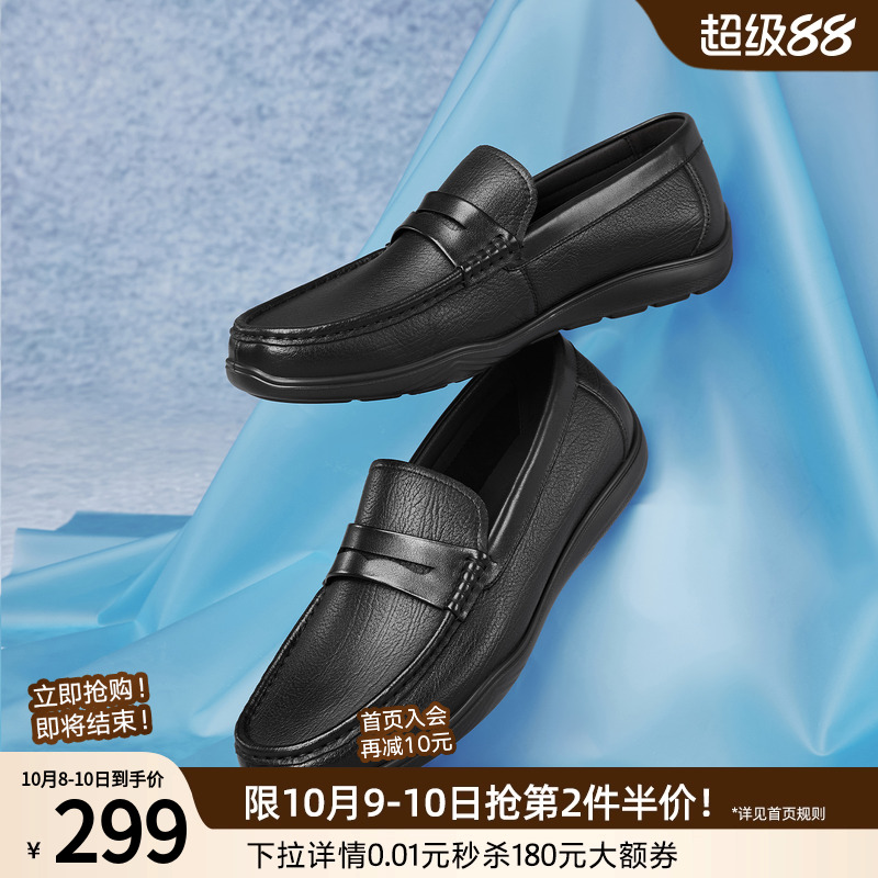 百思图2025秋新款羊皮一脚蹬乐福鞋豆豆鞋商务男休闲皮鞋51701CM5