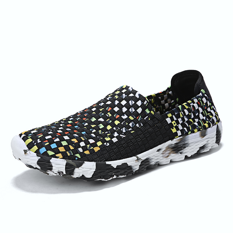 秋季男士皮筋帆布编织鞋一脚蹬懒人运动休闲透气松紧百搭潮男鞋子